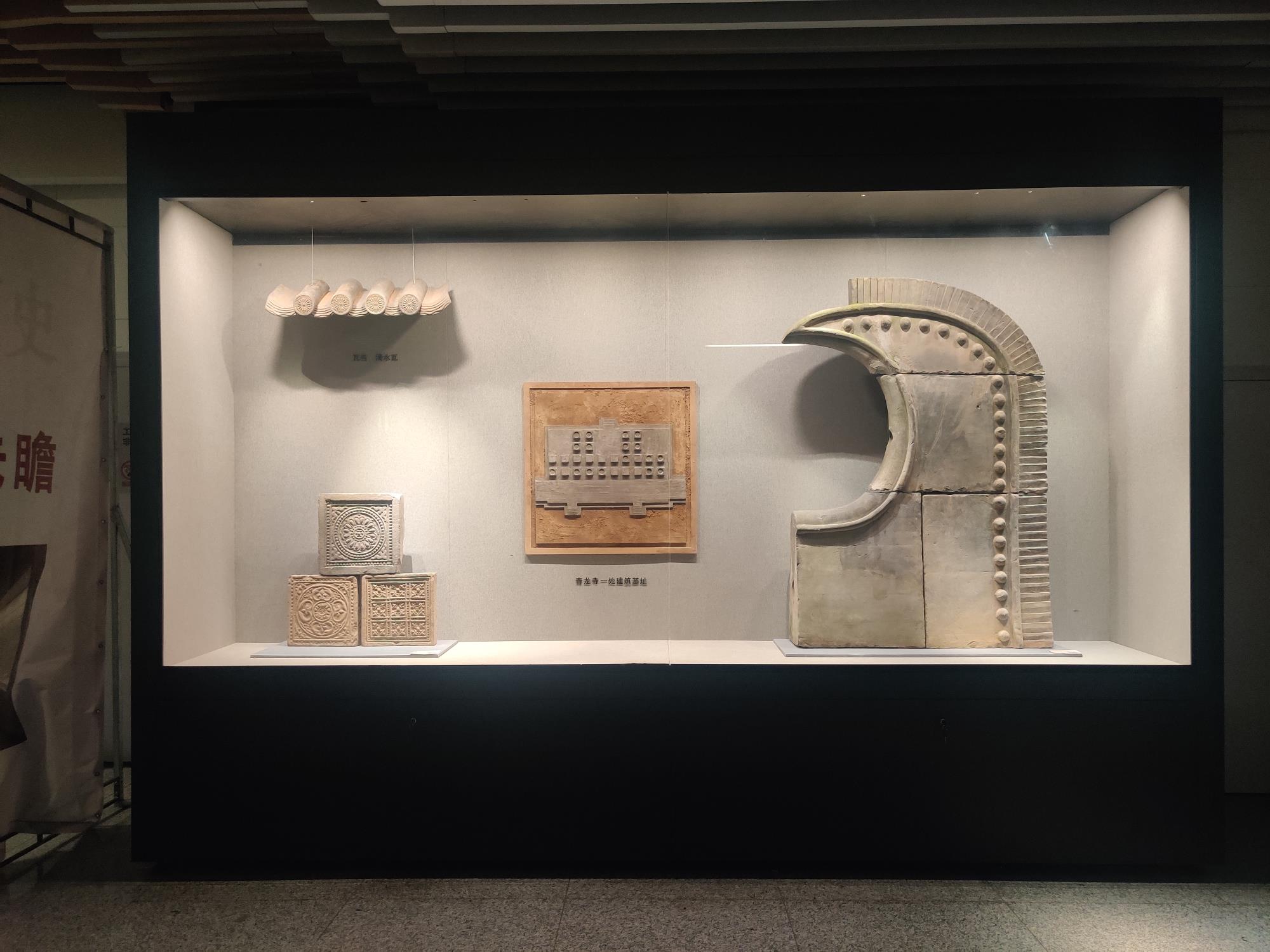 該展示項目設(shè)在西安市地鐵青龍寺站H口和G口通道內(nèi)。其中,H口處展柜以青龍寺周邊不同時期相關(guān)考古發(fā)掘資料為歷史線索,漢唐、宋元、明清等各個歷史時期代表性瓷器標本為展示對象,通過考古地層的模擬方式展示了我國古代陶瓷器各個時期的藝術(shù)特征;G口是通向唐代著名寺院遺址青龍寺的孔道,展覽以青龍寺遺址發(fā)掘過程中發(fā)現(xiàn)的重要唐朝建筑基址、出土建筑構(gòu)件為基礎(chǔ),藝術(shù)展示了唐朝建筑中唐寶象紋方磚、蓮花瓦當、花邊瓦、鴟尾等構(gòu)件的具體形狀。為了讓公眾對柜內(nèi)展示內(nèi)容有更加準確和深入的理解,文化遺產(chǎn)研究院數(shù)字化團隊設(shè)置了二維碼導(dǎo)覽提供文物講解,以生動的形式“讓文物開口說話”。