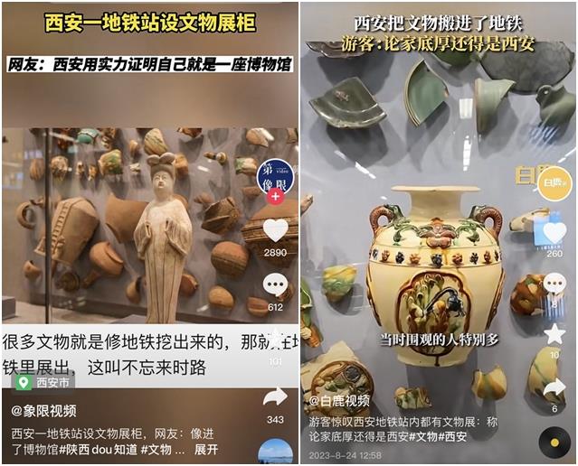 “這些文物以前只能在博物館里看到,沒想到一進青龍寺地鐵站就看到了,這里的瓷器太精美了,讓我們真切感受長安古城的獨特魅力和文化底蘊,文化體驗感滿滿!從這些文物展示就能發(fā)現(xiàn),西安真的是一座有歷史、有溫度、有情懷的城市。”暑期來西安旅游的外地游客王女士說。