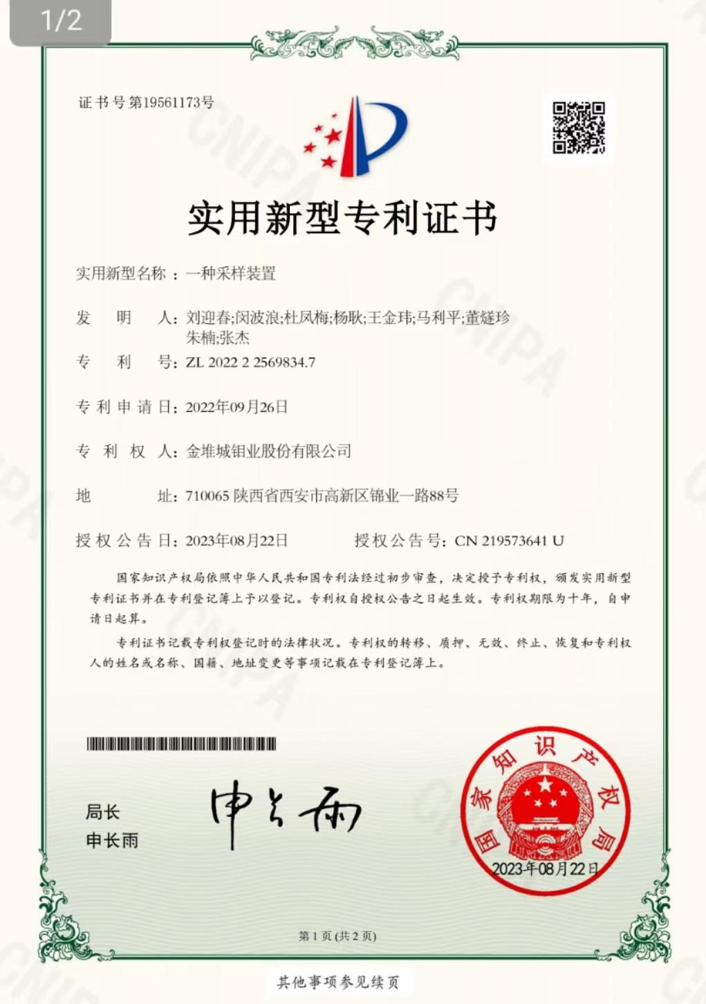 近日,金鉬集團(tuán)礦山分公司研發(fā)的《一種采樣裝置》被國家知識產(chǎn)權(quán)局授予實用新型專利證書。