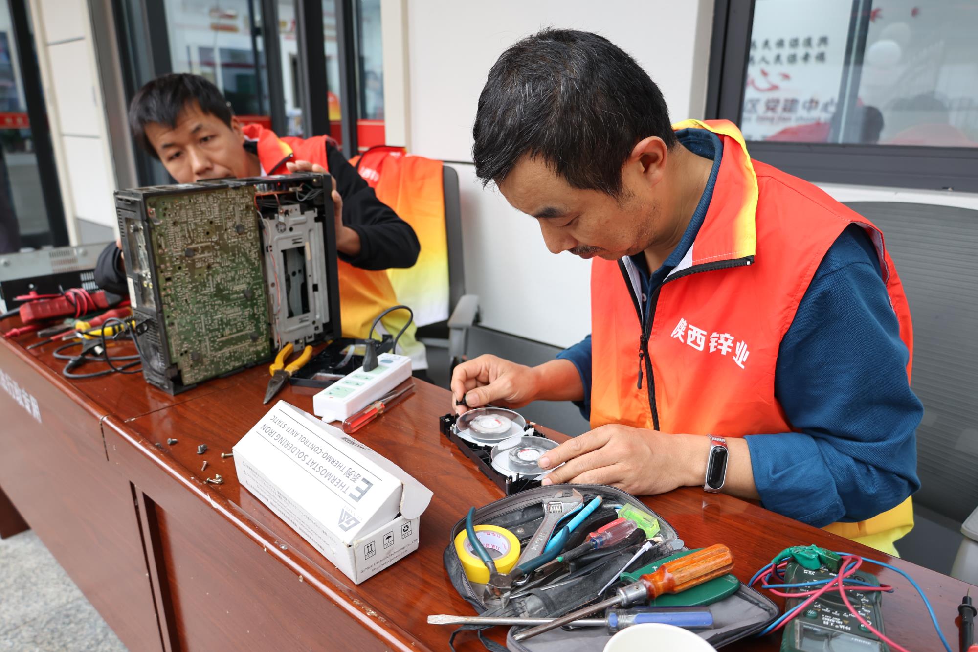 公司志愿者在社區(qū)開展義務(wù)理發(fā)和維修小家電活動。盡管秋雨綿綿,也擋不住現(xiàn)場群眾的熱情。在小家電維修現(xiàn)場,大家紛紛拿來熱水壺、電飯煲等小家電讓志愿者“會診”。一臺臺廢舊家電在志愿者的手里重獲“新生”。