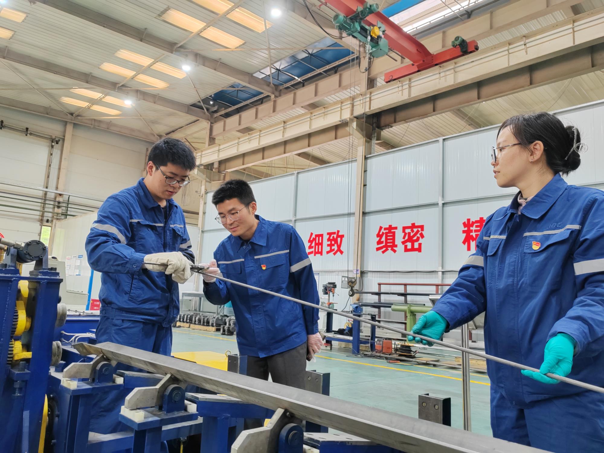 薄壁鉬合金管主要應(yīng)用于核電及高端溫控等領(lǐng)域,而國內(nèi)高附加值大長徑比薄壁鉬合金管的制備技術(shù)一直處于“無人區(qū)”。席莎和研發(fā)團(tuán)隊(duì)決心啃下這塊“硬骨頭”。作為薄壁鉬合金管關(guān)鍵制備環(huán)節(jié)之一-合金管坯制備的工藝負(fù)責(zé)人,為了打通合金管坯的制備工藝,為成品管材軋制提供穩(wěn)定可靠的管坯,席莎在40℃左右的鍛造車間連續(xù)試驗(yàn)跟蹤,認(rèn)真做好每一次試驗(yàn)記錄,力求把每一個(gè)環(huán)節(jié)做到極致,常常汗流浹背也無暇顧及。為了做到成品管材質(zhì)量追溯有據(jù)可依,她和團(tuán)隊(duì)人員經(jīng)常加班加點(diǎn)、挑燈夜戰(zhàn)尋求最佳解決方案。最終,在她和團(tuán)隊(duì)的不懈努力下,攻克了薄壁鉬合金管材全流程關(guān)鍵制備技術(shù),成功開發(fā)出了直徑4-20mm、壁厚0.3-1.5mm、最大長度6米的薄壁鉬合金管材,填補(bǔ)了國內(nèi)大長徑比薄壁鉬合金管的產(chǎn)品空白并獲得了核能及溫控領(lǐng)域用戶的極大肯定。