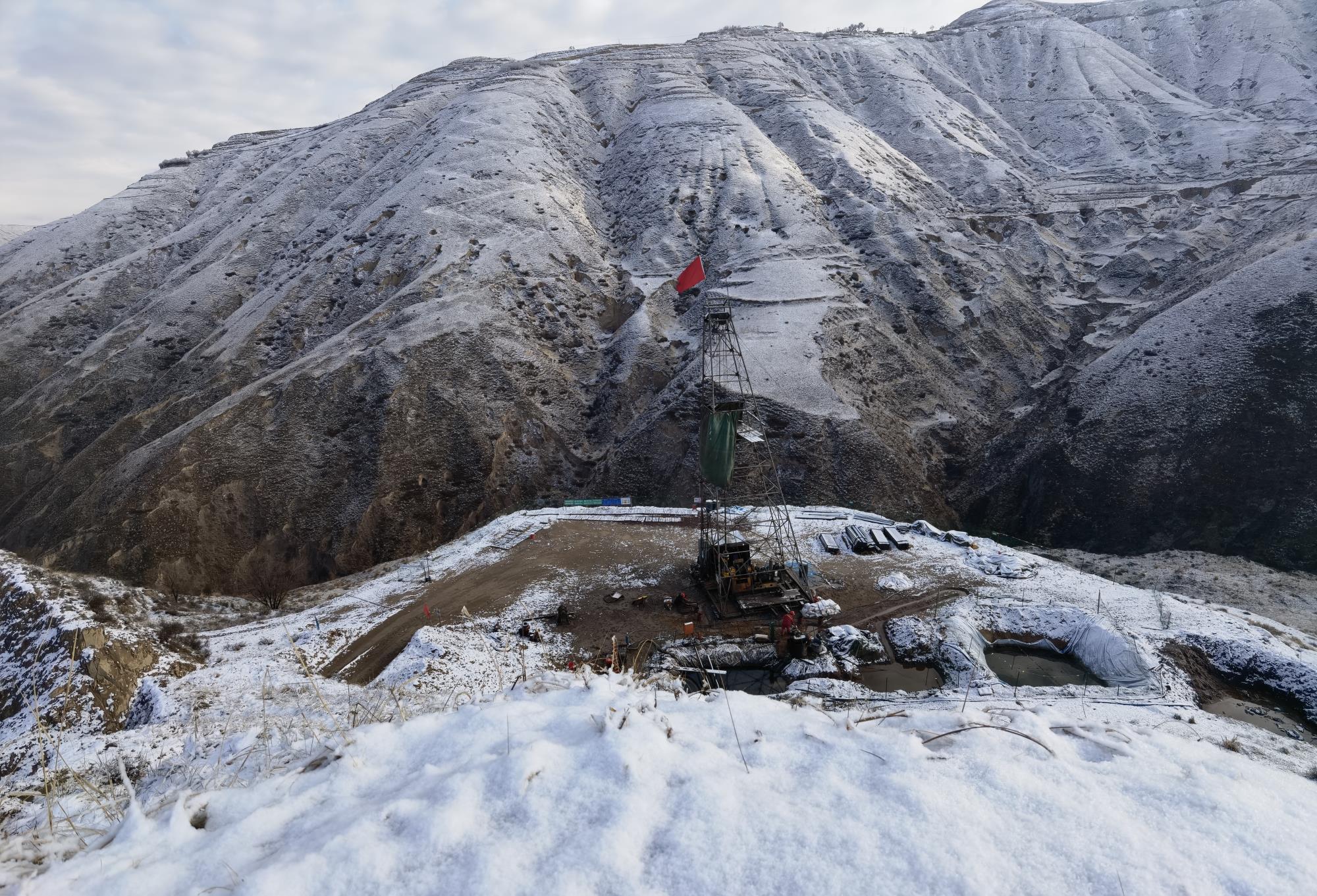 (一場(chǎng)春雪過(guò)后,甘肅永靖縣姬家灣-抱龍溝一帶煤炭資源調(diào)查鉆探施工現(xiàn)場(chǎng))