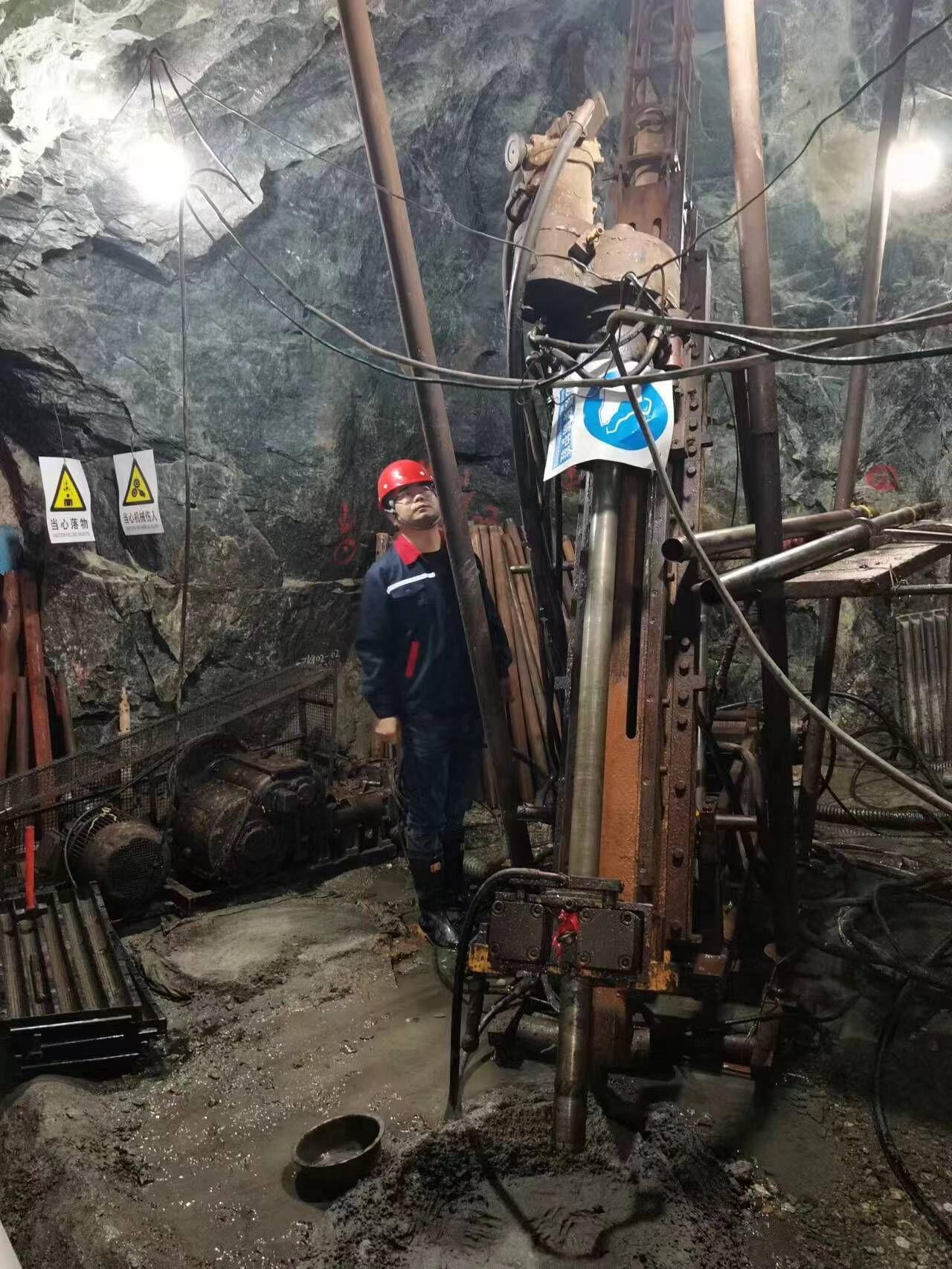 “每次進入坑道后,我們頭頂安全帽,身穿工作服,肩背自救器,戴著厚厚的防塵口罩,先乘坐絞車下井,再蹚著或深或淺的積水,走過坑洼不平的一段路才能到達工作面,常常熱得大汗淋漓,身體處在‘桑拿浴’的環(huán)境中。”潼金礦業(yè)坑內(nèi)鉆項目現(xiàn)場負責人景國隆說。