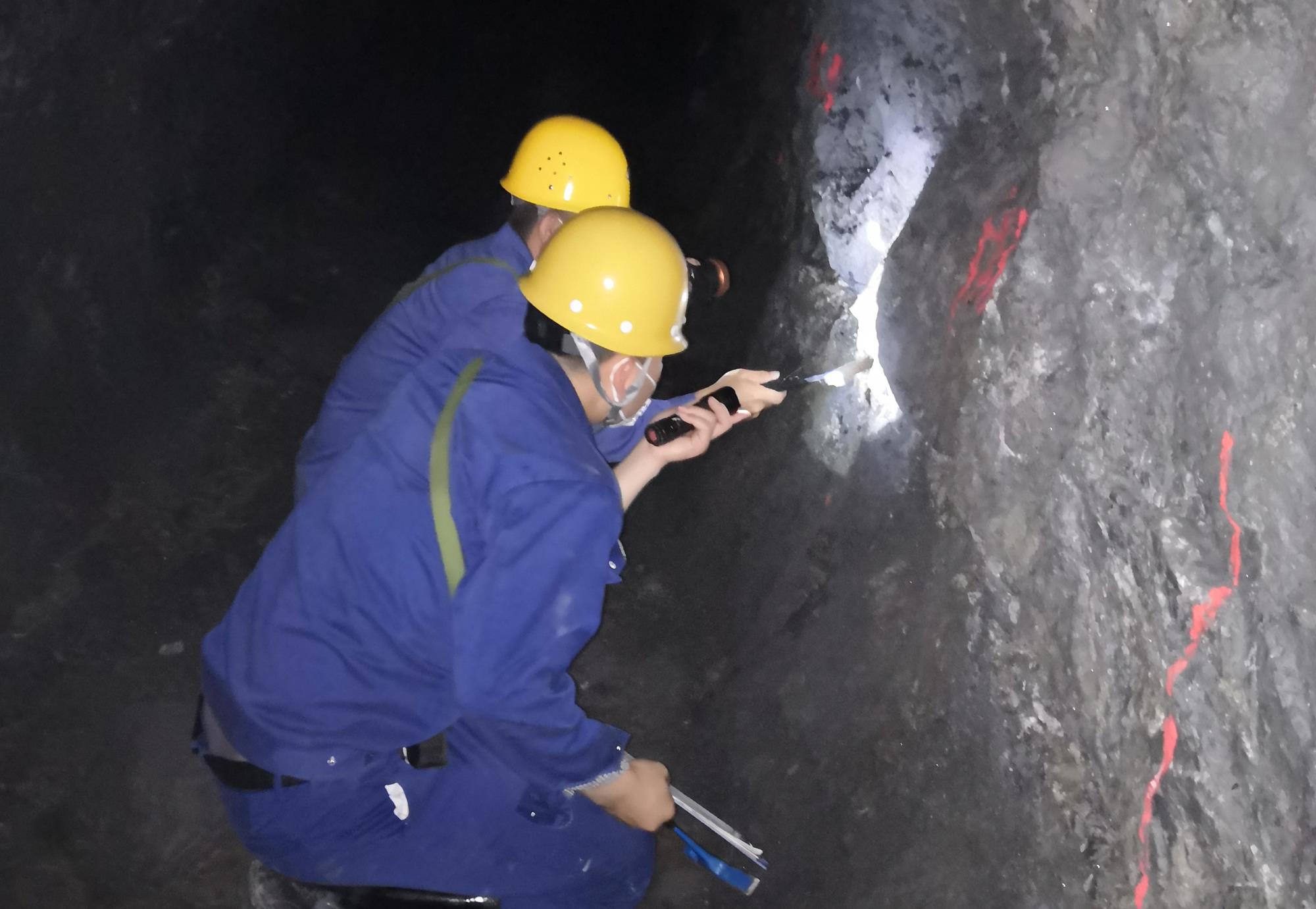 ▲寶雞鳳縣東塘子鉛鋅礦床86線以西詳查項(xiàng)目組人員開(kāi)展坑道調(diào)研