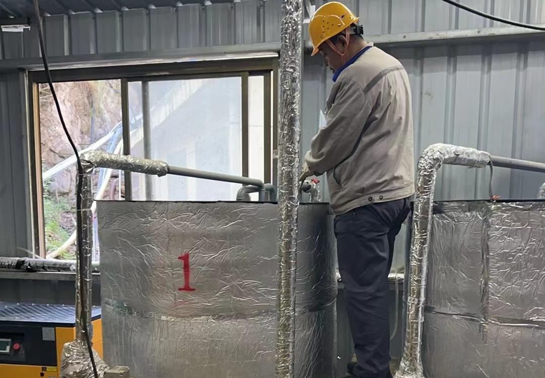 工作人員正在調(diào)整充填料漿配備