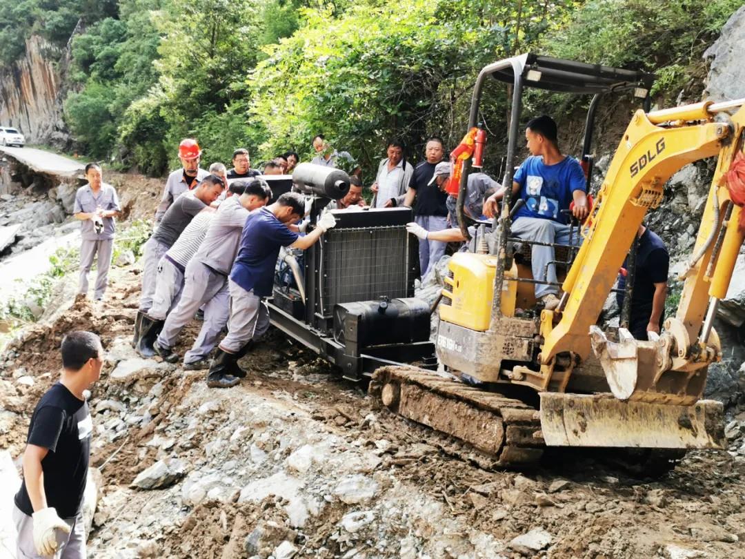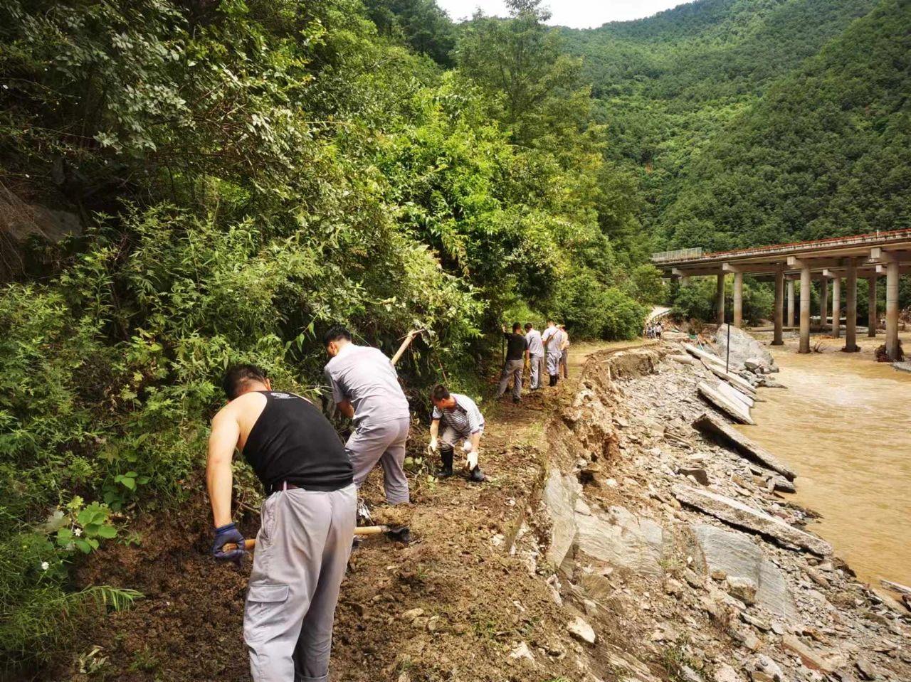 7月19日,四方金礦職工支援坪坎鎮(zhèn)對坍塌的路基、受損路面和重要路段進行修復。