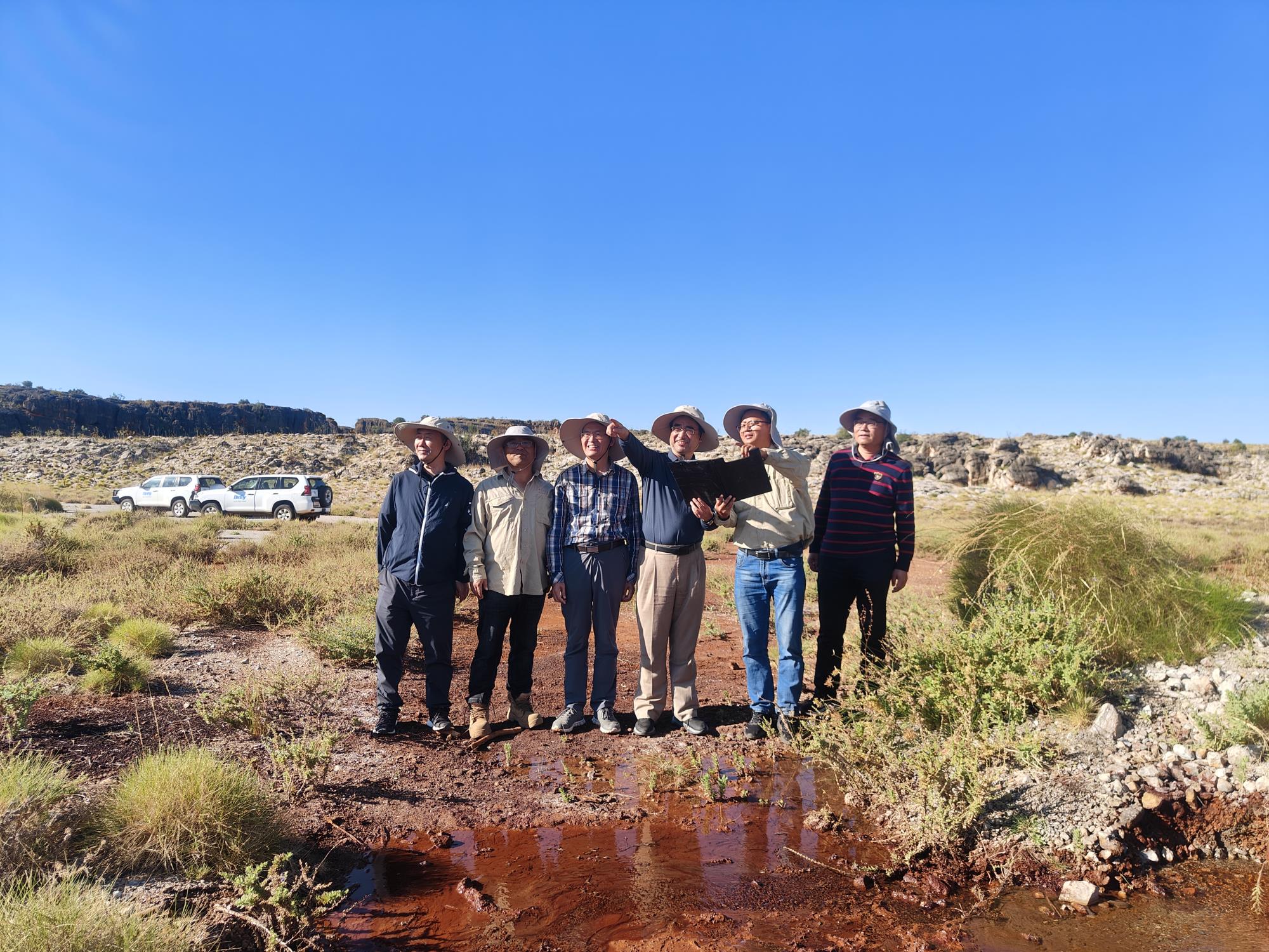 隨后,代表團一行前往位于西澳北部坎寧盆地北緣的子午線礦業(yè)公司雷納德·謝爾夫鉛鋅礦,開展實地踏勘和檢查調研,進一步了解項目進展。該項目擁有各類礦權區(qū)27塊,面積約275.25平方千米,是世界重要的密西西比河谷型鉛鋅礦產地之一。截至2023年底,整個礦帶已投入鉆探124萬米。為進一步提升海外資產價值,實現(xiàn)新礦種資源的找礦突破,今年地質技術人員在Kutarta-Palijippa和Goongewa East兩個勘查區(qū)重點開展稀土金屬勘查工作,通過地表路線調查、三維模型分析及歷史資料研究,對鉛鋅和稀土成礦模式進行了歸納總結,系統(tǒng)梳理了項目礦權范圍內的鉛鋅和稀土找礦潛力,確定可供進一步勘查的鉛鋅靶區(qū)2個。