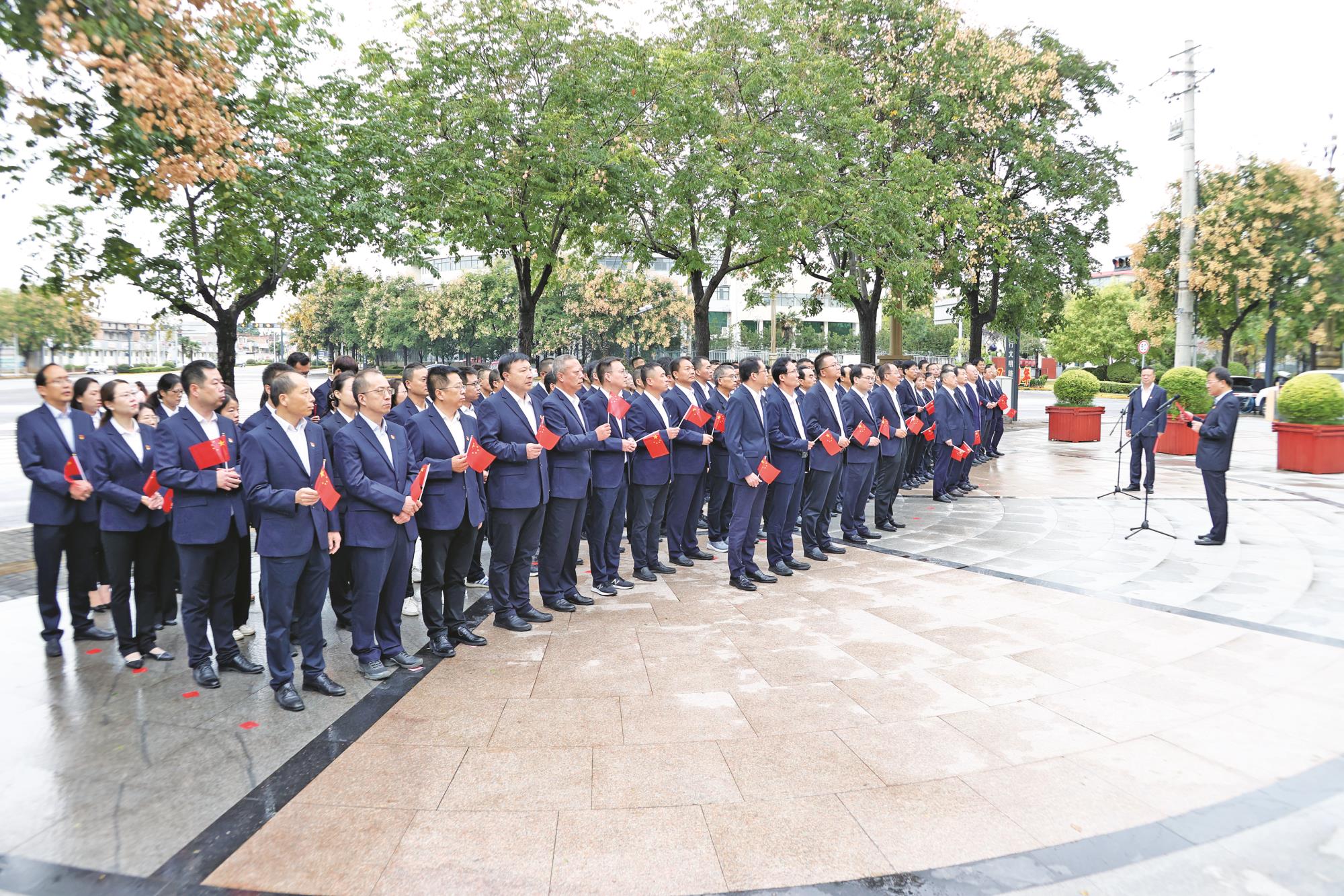9月30日早9時,金城大廈樓前廣場人員整齊肅立,慶祝中華人民共和國成立75周年升旗儀式在此隆重舉行。現(xiàn)場150余名職工注視著冉冉升起的國旗,回顧了中華人民共和國成立75周年來的光輝歷程和金鉬集團66年的奮斗歷程,共同祝福偉大祖國山河錦繡,國泰民安。并堅定信心,勇?lián)皣髲妵笔姑瑸榘压窘ǔ墒澜缫涣縻f釩專業(yè)領軍企業(yè)而努力奮斗。