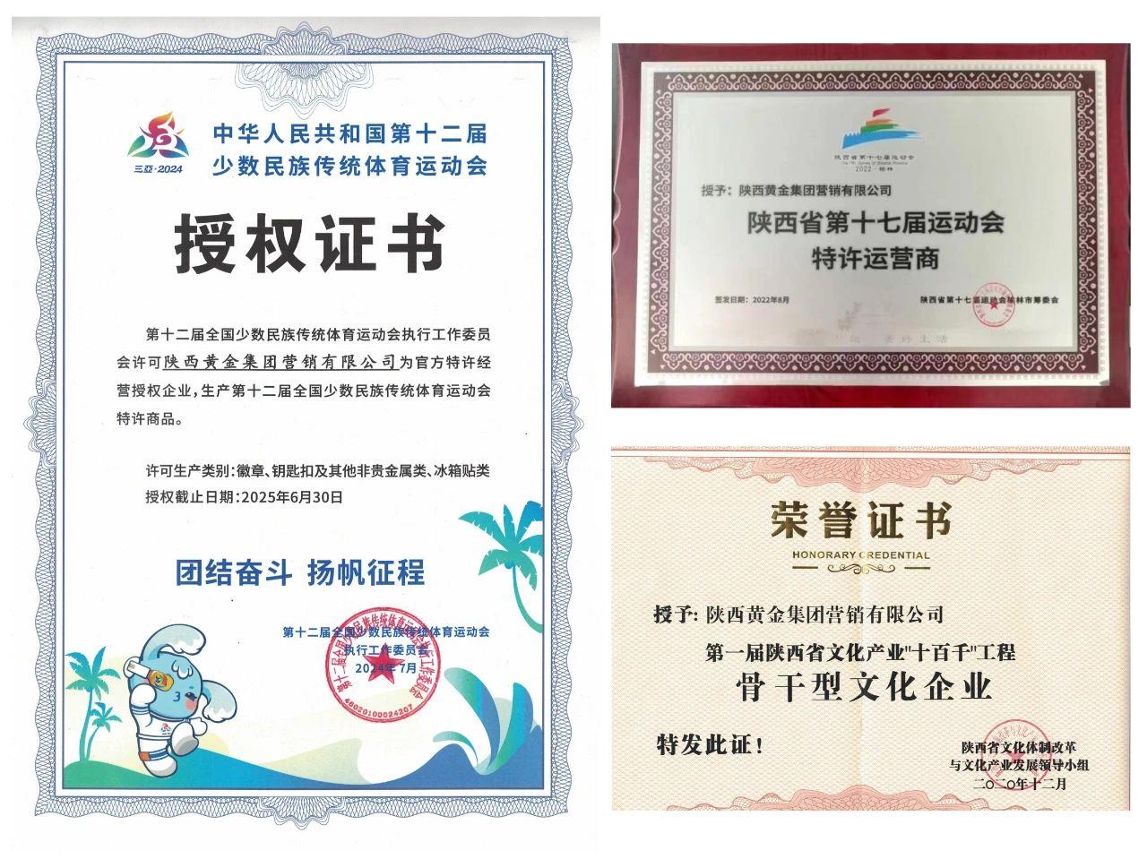 近年來,黃金集團(tuán)充分發(fā)揮全產(chǎn)業(yè)鏈、全資質(zhì)等優(yōu)勢(shì),精心培育打造了獨(dú)具特色的“秦金”品牌,并在全國(guó)貴金屬銷售領(lǐng)域贏得了較高知名度和影響力。“秦金”商標(biāo)被評(píng)為“陜西省著名商標(biāo)”,“秦金”品牌標(biāo)準(zhǔn)金被認(rèn)定為“陜西工業(yè)精品”“陜西省知名品牌產(chǎn)品”,權(quán)屬營(yíng)銷公司連續(xù)獲評(píng)第一屆、第二屆陜西省文化產(chǎn)業(yè)“十百千”工程骨干型文化企業(yè),“秦金”品牌貴金屬投資文創(chuàng)產(chǎn)品已在全國(guó)二十余家銀行的上萬個(gè)網(wǎng)點(diǎn)銷售。進(jìn)軍貴金屬文體旅博產(chǎn)業(yè)是黃金集團(tuán)延鏈、補(bǔ)鏈、強(qiáng)鏈的重要舉措,四年來連續(xù)助力國(guó)家及省上多個(gè)重要體育賽事,圓滿完成2021年十四運(yùn)會(huì)全品類特許運(yùn)營(yíng)、2022年陜西省十七運(yùn)會(huì)特許運(yùn)營(yíng)、2023年第一屆學(xué)青會(huì)特許運(yùn)營(yíng)、陜西省第十屆藝術(shù)節(jié)運(yùn)營(yíng)、2024年第十二屆全國(guó)少數(shù)民族運(yùn)動(dòng)會(huì)特許運(yùn)營(yíng),榮獲“陜西省第十七屆運(yùn)動(dòng)會(huì)特別協(xié)作企業(yè)”稱號(hào)并獲頒“集體嘉獎(jiǎng)”榮譽(yù)獎(jiǎng)牌。一系列成績(jī)與突破,充分展現(xiàn)了黃金集團(tuán)在服務(wù)國(guó)家級(jí)體育賽事方面的擔(dān)當(dāng)與貢獻(xiàn),彰顯了集團(tuán)的核心競(jìng)爭(zhēng)力與專業(yè)化能力。此次成功競(jìng)獲十五運(yùn)會(huì)貴金屬制品類特許生產(chǎn)商,對(duì)在大灣區(qū)乃至全國(guó)更大范圍內(nèi)拓展市場(chǎng)、建立合作伙伴關(guān)系等具有重要意義。