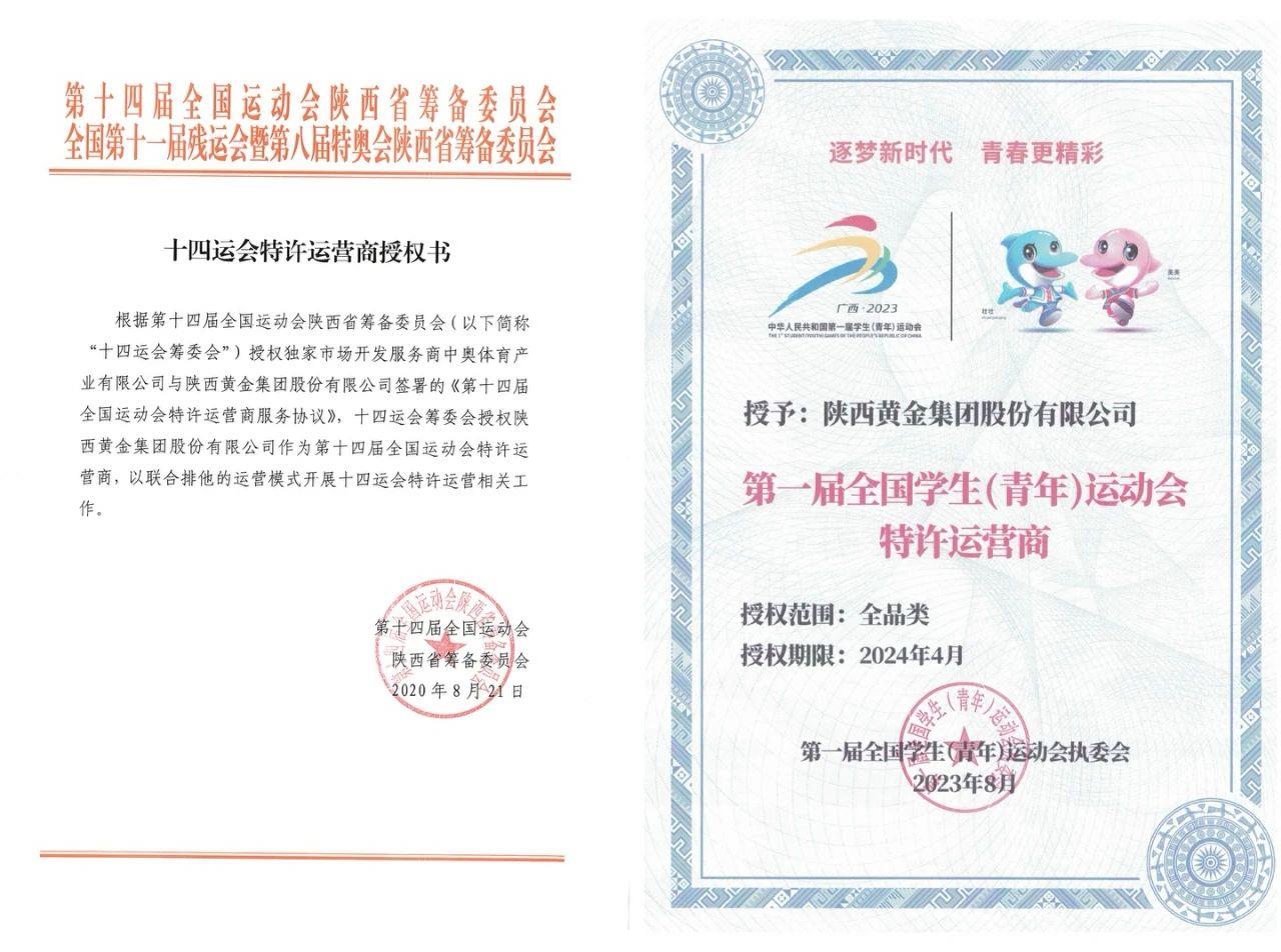 2025年1月13日,黃金集團(tuán)成功競(jìng)獲“中華人民共和國(guó)第十五屆全國(guó)運(yùn)動(dòng)會(huì)(以下簡(jiǎn)稱十五運(yùn)會(huì))貴金屬制品類(金/銀)特許生產(chǎn)商”資格,成為十五運(yùn)會(huì)面向全國(guó)征集的3家貴金屬制品類(金/銀)特許生產(chǎn)商之一,亦是該類別中唯一一家國(guó)有企業(yè)。
