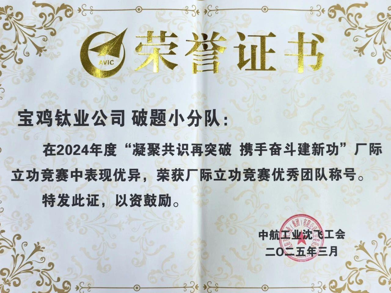 近日,在沈陽飛機(jī)工業(yè)(集團(tuán))有限公司工會揭曉的2024年度“凝聚共識再突破 攜手奮斗建新功”廠際立功競賽獲獎名單中,寶鈦股份以卓越表現(xiàn)獲得多個獎項:寶鈦股份榮獲“表揚(yáng)單位”稱號,寶鈦股份王勤波帶領(lǐng)的破題小分隊榮獲“優(yōu)秀團(tuán)隊”稱號,寶鈦股份楊軍榮獲“先進(jìn)個人”稱號。這不僅彰顯了寶鈦股份在航空鈦材領(lǐng)域的全鏈條服務(wù)能力,更標(biāo)志著寶鈦股份與航空工業(yè)鏈主企業(yè)的戰(zhàn)略協(xié)作邁上了新臺階。