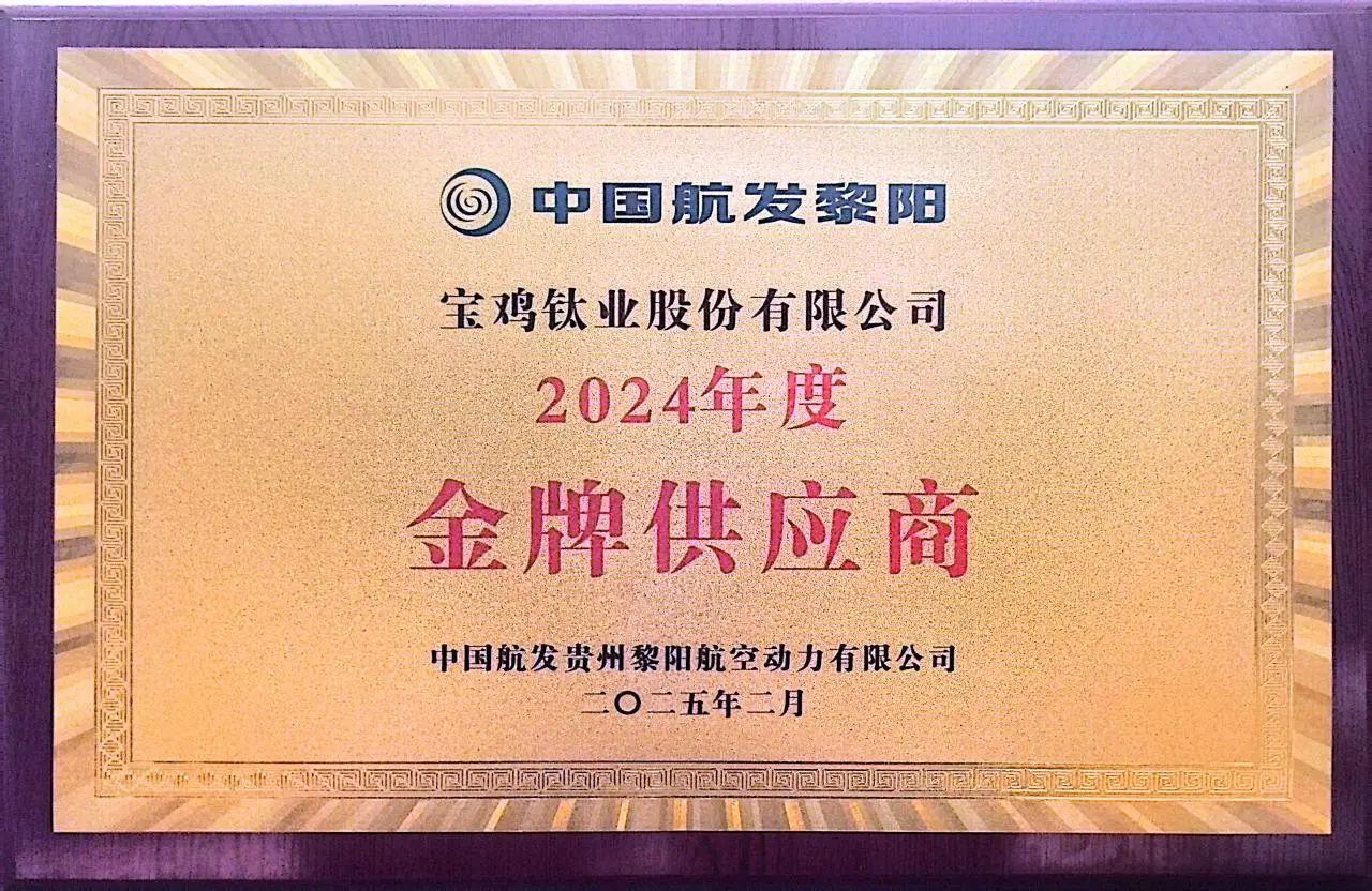 近日,在中國航發(fā)貴州黎陽航空動力有限公司(以下簡稱中國航發(fā)黎陽)2024年度供應(yīng)商大會上,寶鈦股份憑借在鈦合金材料研發(fā)、生產(chǎn)交付及服務(wù)保障領(lǐng)域的卓越表現(xiàn),從數(shù)百家供應(yīng)商中脫穎而出,榮獲“2024年度金牌供應(yīng)商”稱號。