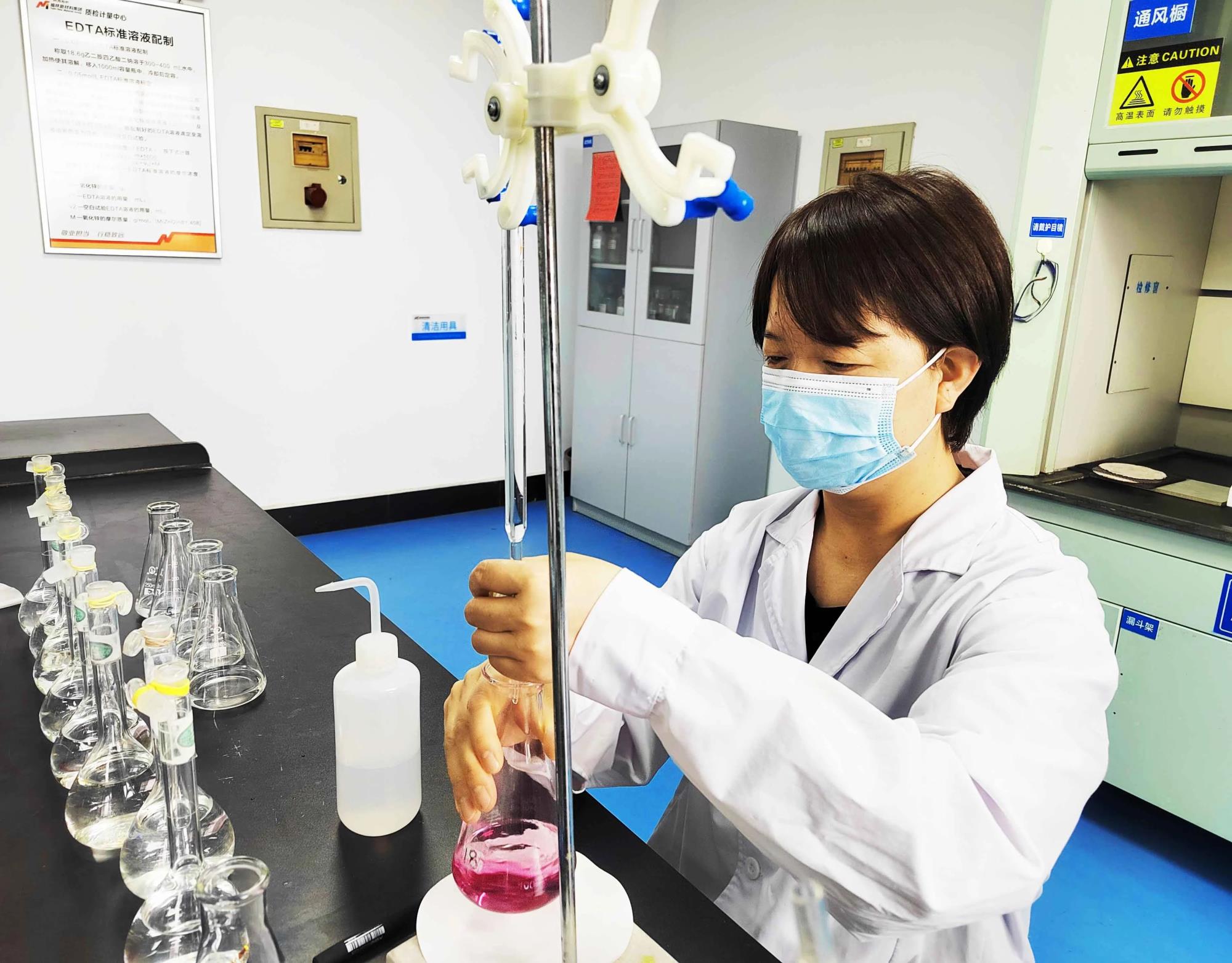 5月14日上午八點,質(zhì)檢計量中心化驗室里,天平已經(jīng)開始工作,石蕊寧與同事們身著工作服,忙碌地穿梭在分析室間,稱樣、檢測、記錄……