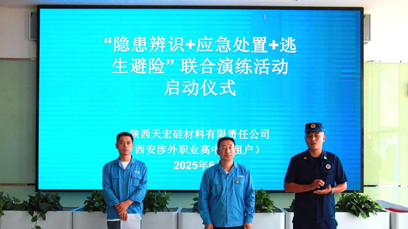 天宏硅業(yè)領導班子成員、全體在崗員工及西安涉外職業(yè)高中在校師生參與了此次演練。