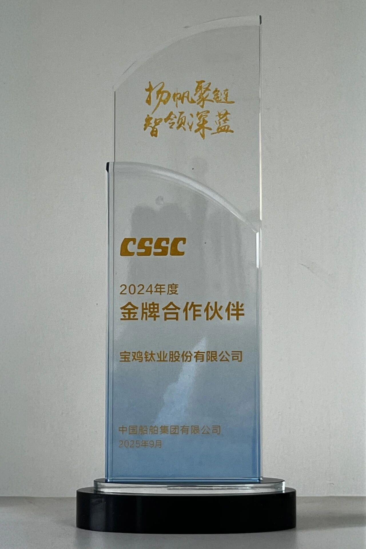 寶鈦股份榮獲中船集團(tuán)“金牌合作伙伴”稱號