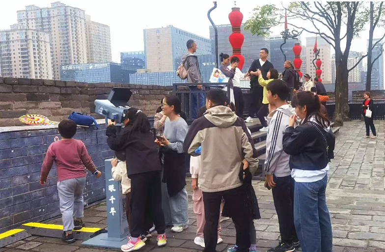 游客在城墻景區(qū)體驗(yàn)AR設(shè)備