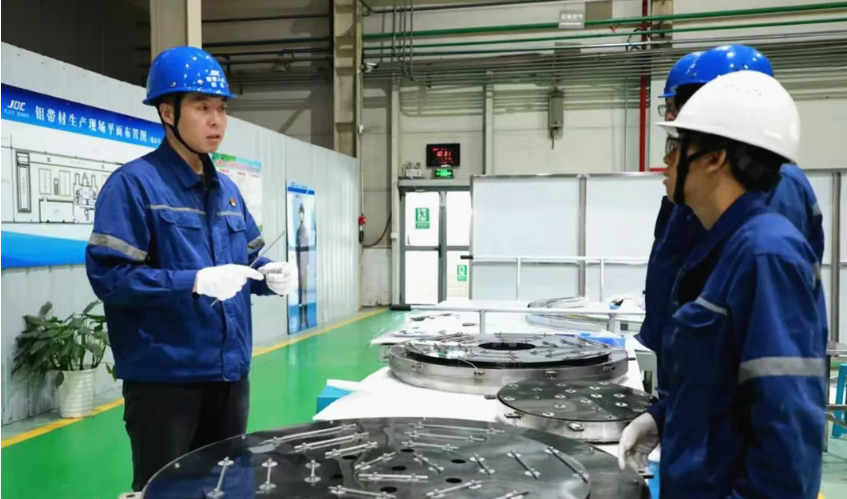 在金鉬股份金屬材料事業(yè)部鉬板材生產(chǎn)車(chē)間,面對(duì)小規(guī)格組件成形效率低的瓶頸,黨員工程師楊浩積極響應(yīng)黨組織“揭榜掛帥”號(hào)召,帶頭組建黨員突擊隊(duì)。攻關(guān)過(guò)程中,針對(duì)鉬鑭合金鉚釘易開(kāi)裂難題,黨員技師帶頭反復(fù)試驗(yàn),固化關(guān)鍵工藝參數(shù)。面對(duì)單套筒體需完成8000余次鉚接的艱巨任務(wù),黨員班長(zhǎng)堅(jiān)守關(guān)鍵工位。為解決市場(chǎng)設(shè)備不匹配的困境,黨員骨干主動(dòng)攻關(guān),自主設(shè)計(jì)專(zhuān)用工裝突破自動(dòng)化瓶頸。在黨員團(tuán)隊(duì)的合力攻堅(jiān)下,2025年累計(jì)交付數(shù)十套真空熱場(chǎng)鉬組件,成功突破薄板軋制與成套裝配全流程技術(shù),并培養(yǎng)出一支掌握核心工藝的技能隊(duì)伍,為高端熱場(chǎng)組件產(chǎn)業(yè)化奠定了堅(jiān)實(shí)的技術(shù)與人才基礎(chǔ)。