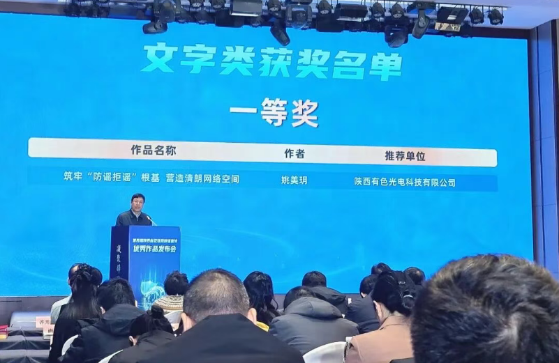 為進(jìn)一步擴(kuò)大網(wǎng)絡(luò)辟謠宣傳影響力,凝聚社會(huì)力量參與謠言治理,2月2日,中共陜西省委網(wǎng)信辦在西安舉辦第四屆陜西省辟謠宣傳優(yōu)秀作品發(fā)布會(huì)及頒獎(jiǎng)儀式,陜西有色光電科技有限公司黨群工作部員工姚美玥的作品《筑牢“筑牢“防謠拒謠”根基 營(yíng)造清朗網(wǎng)絡(luò)空間”》喜獲文字類一等獎(jiǎng)。