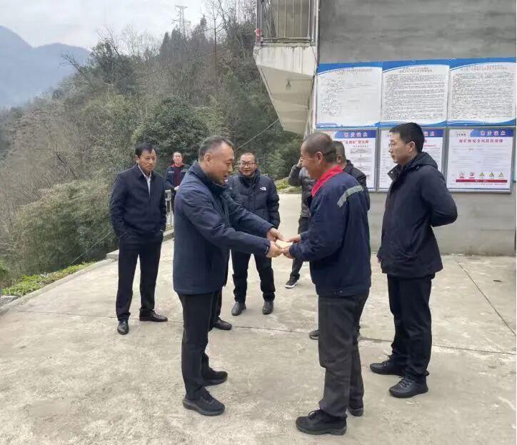 趙黎明一行先后深入冶礦集團屈家山礦業(yè)530平硐、湘貴錳業(yè)周家灣尾礦庫及電解錳生產(chǎn)線開展實地督導檢查。詳細查看了企業(yè)停產(chǎn)期間設備設施維護、隱蔽致災因素普查等安全環(huán)保管理情況。在周家灣尾礦庫,趙黎明看望慰問了困難黨員,詳細詢問其身體狀況、家庭生活情況及實際困難,送上了組織的溫暖與節(jié)日的祝福,并重點檢查了尾礦庫值班值守、在線監(jiān)測、閉庫治理、滲濾液管控等管理情況,對尾礦庫停產(chǎn)期間安全環(huán)保管理提出了相關要求。