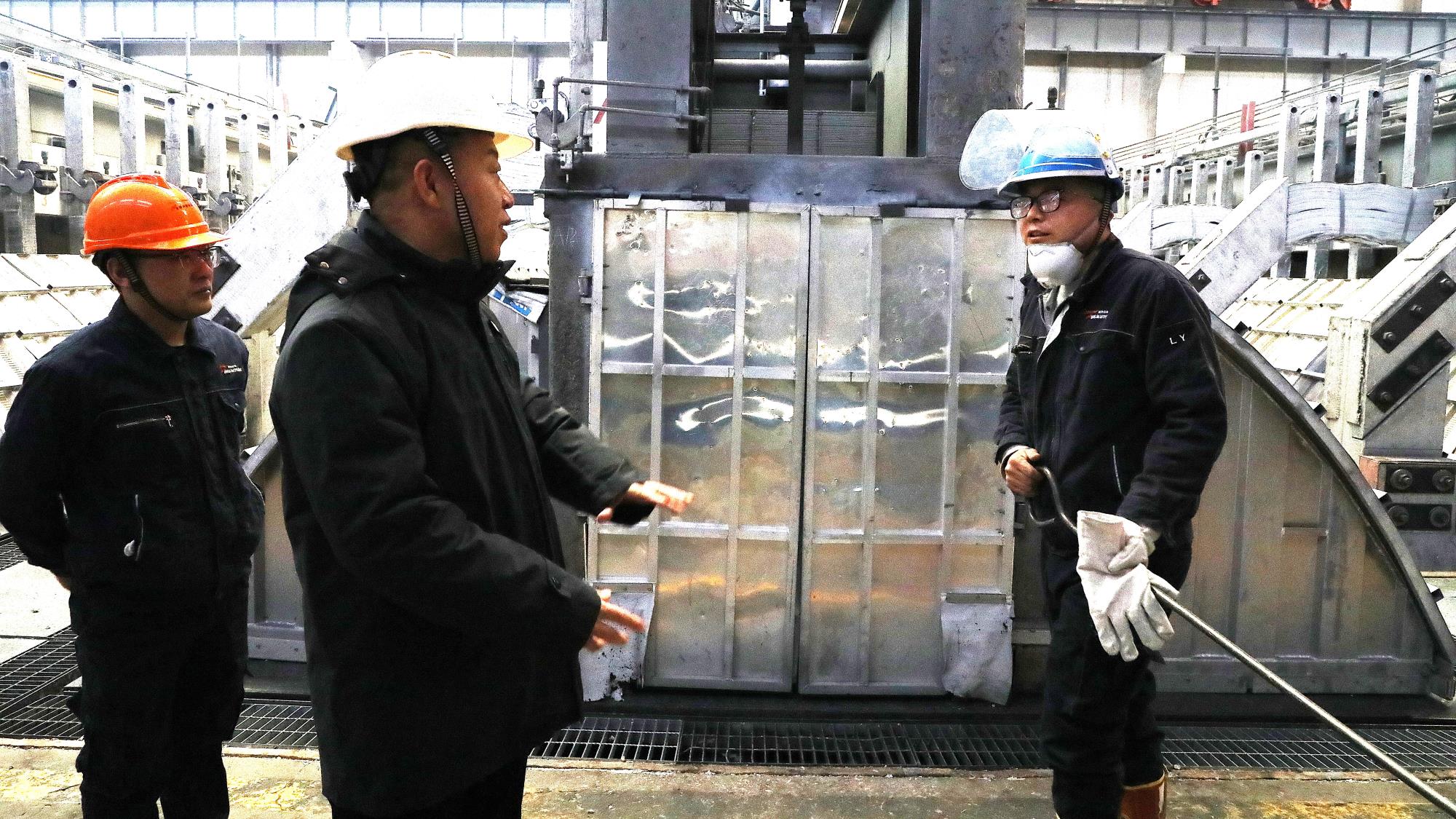 期間,牛虎明分別駐足合金分公司扁鑄錠車間和鋁業(yè)分公司電解一車間交接班室,查看了一線職工的工作環(huán)境,詳細了解大家的工作和生活情況,關(guān)切詢問實際困難,叮囑各單位要把職工冷暖放到心上,用心用情解決好職工生產(chǎn)生活中的各項問題。
