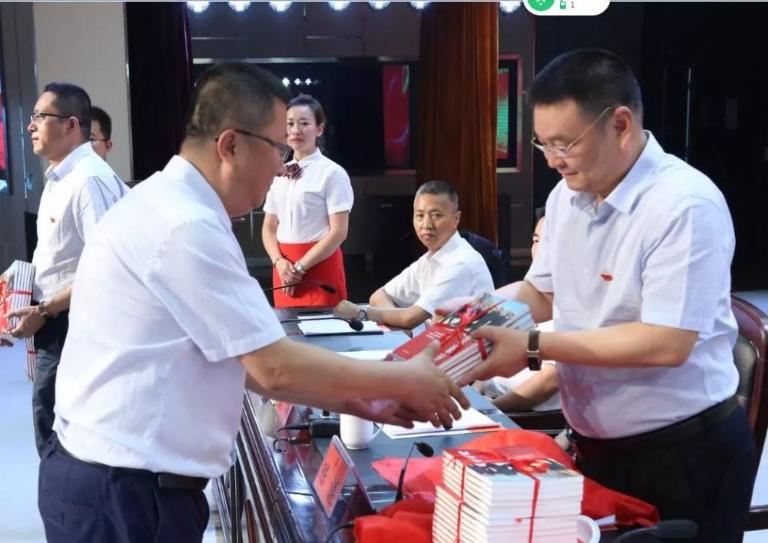 會上舉行了授書儀式,陳書記代表公司黨委向各二級黨委發(fā)放了紀(jì)實文學(xué)《梁家河》書籍。