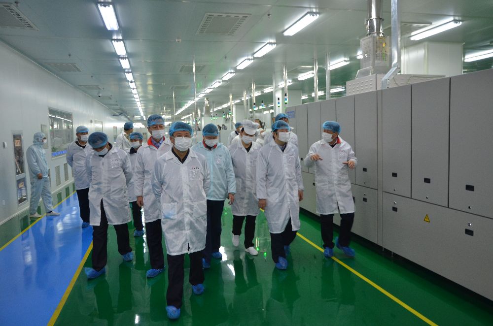 在乘車沿途參觀廠容廠貌并聽取范董事長(zhǎng)、田總經(jīng)理關(guān)于項(xiàng)目建設(shè)的基本情況介紹后,岳主任一行深入105電池事業(yè)部調(diào)研參觀。高效電池事業(yè)部是光電科技多晶、單晶電池片的關(guān)鍵工序生產(chǎn)線,擁有德國(guó)、荷蘭等國(guó)際一流的光伏自動(dòng)化全套裝備。岳主任興致勃勃按工序順次仔細(xì)察看,叮囑陪同的新區(qū)和新城領(lǐng)導(dǎo)要全力支持公司做強(qiáng)做大做優(yōu),強(qiáng)調(diào)要高度重視省內(nèi)市場(chǎng)拉動(dòng)作用,在市場(chǎng)好的時(shí)候,一定要抓住機(jī)遇,鼓勵(lì)企業(yè)下決心上產(chǎn)線,加快產(chǎn)能釋放,早日達(dá)產(chǎn)達(dá)效,為新區(qū)經(jīng)濟(jì)社會(huì)發(fā)展做出更大貢獻(xiàn)。