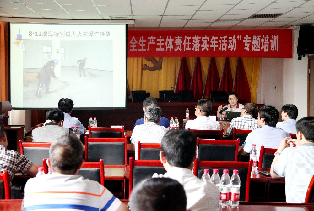 為積極響應集團公司“企業(yè)安全生產主體責任落實年活動”號召,按照公司“安全月”活動安排,進一步強化全員安全發(fā)展觀念,提升全員安全素質,6月13日上午,漢中鋅業(yè)有限責任公司聘請西安科技大學教授劉紀坤對管理人員進行了落實企業(yè)安全生產主體責任專題培訓。公司領導,各單位各部門副科級以上管理人員以及各車間專職安全員共計100余人參加了培訓。