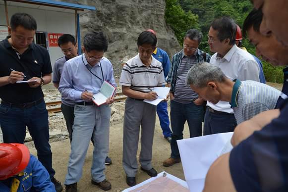 毛景文院士(左二)、呂古賢研究員(左三)在山陽龍頭溝實(shí)地考察
