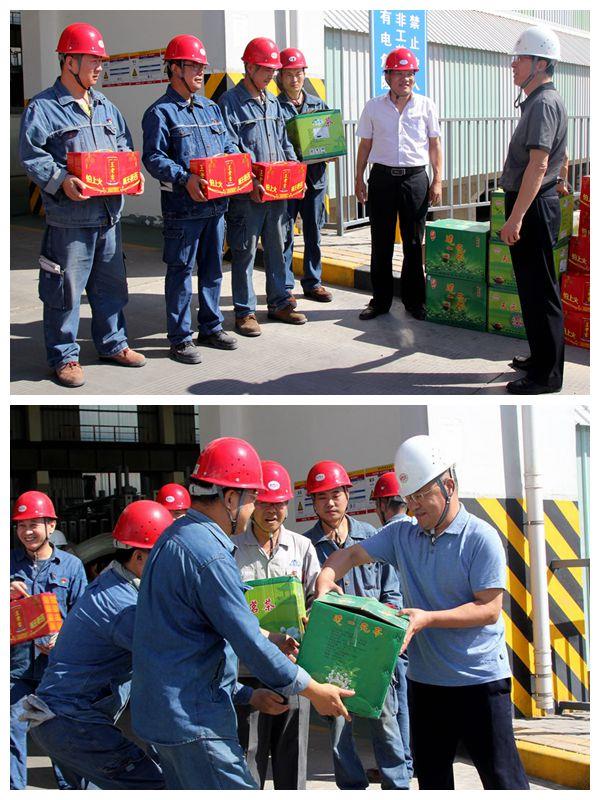 面對緊張作業的電解工,魏俊英表達了集團公司的親切慰問,對大家高溫下的忠于職守予以充分肯定,向在場職工發放了清涼飲料和茶葉,叮囑大家注意安全,做好防護工作。在該公司領導陪同下,魏俊英一行還深入生產現場,了解生產運行情況,詳細詢問了解職工高溫勞動防護措施,叮囑企業要以人為本,關心職工健康,落實好各項防暑降溫和安全防護措施,確保一線員工身體健康和生產安全。