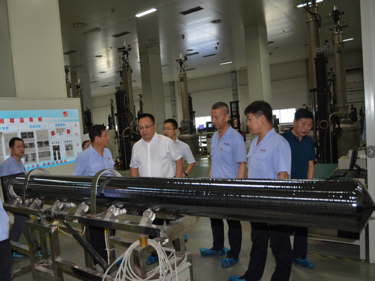 王天雄一行在光電科技公司黨委書記、董事長范江峰,總經(jīng)理田建之陪同下參觀了鑄錠、單晶、硅片、電池、組件事業(yè)部,對(duì)光電科技單體產(chǎn)線滿產(chǎn)運(yùn)行、職工精神面貌等給予肯定。