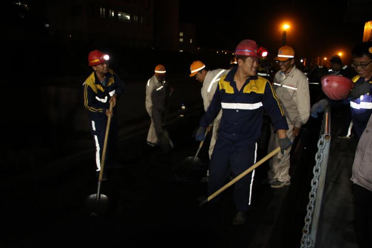 從首列火車裝車結(jié)束至次日凌晨兩點(diǎn),鐵路運(yùn)銷公司領(lǐng)導(dǎo)班子成員全程坐鎮(zhèn)現(xiàn)場進(jìn)行指揮,并親切勉勵所有在崗人員,首次作業(yè)安全第一、嚴(yán)格按照崗位操作流程作業(yè)、不要緊張、大膽發(fā)揮。在完成發(fā)運(yùn)任務(wù)的同時,尋找短板,充分暴露問題和不足。此次試運(yùn)行裝車,是我們首次重載試驗(yàn),對我們的設(shè)備設(shè)施、人員操作技能、各環(huán)節(jié)協(xié)作配合都是一次考驗(yàn),這是一個檢驗(yàn)的過程,同時也是自我提升的過程,一定要善于發(fā)現(xiàn)存在的不足,及時總結(jié)整改,為后期專用線連續(xù)穩(wěn)定運(yùn)行打好基礎(chǔ)。