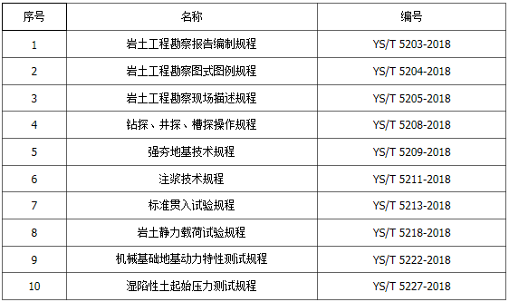 由中國有色金屬工業(yè)西安勘察設(shè)計研究院有限公司主編,會同中國有色金屬工業(yè)昆明勘察設(shè)計研究院有限公司、中國有色金屬工業(yè)長沙勘察設(shè)計研究院有限公司等多家單位共同修訂的《巖土工程勘察報告編制規(guī)程》等10項行業(yè)標(biāo)準(zhǔn)于近日正式出版發(fā)行。