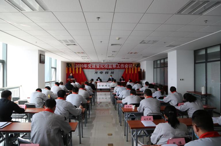4月9日上午,光電科技、華山半導(dǎo)體兩公司在研發(fā)大廈六樓培訓(xùn)室召開(kāi)2020年黨建暨紀(jì)檢監(jiān)察工作會(huì)議。兩公司領(lǐng)導(dǎo)班子成員、各單位(部門)負(fù)責(zé)人、支部書記、關(guān)鍵崗位人員代表、新能源公司代表參加會(huì)議。黨委副書記、總經(jīng)理田建之主持大會(huì)。