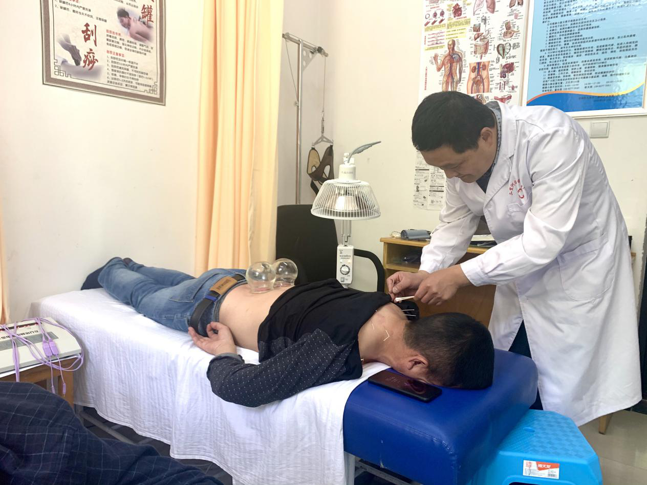 “健康小屋”醫(yī)務(wù)人員正在為公司員工做治療