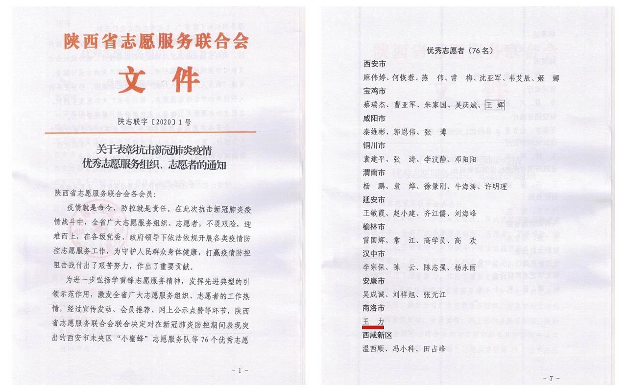 日前,陜西省志愿服務(wù)聯(lián)合會(huì)決定對(duì)在全省新冠肺炎疫情防控期間表現(xiàn)突出的76個(gè)優(yōu)秀志愿服務(wù)組織和76名優(yōu)秀志愿者進(jìn)行表彰。陜西五洲礦業(yè)股份有限公司黨員王力同志榮獲“陜西省抗疫優(yōu)秀志愿者”榮譽(yù)稱號(hào)。
