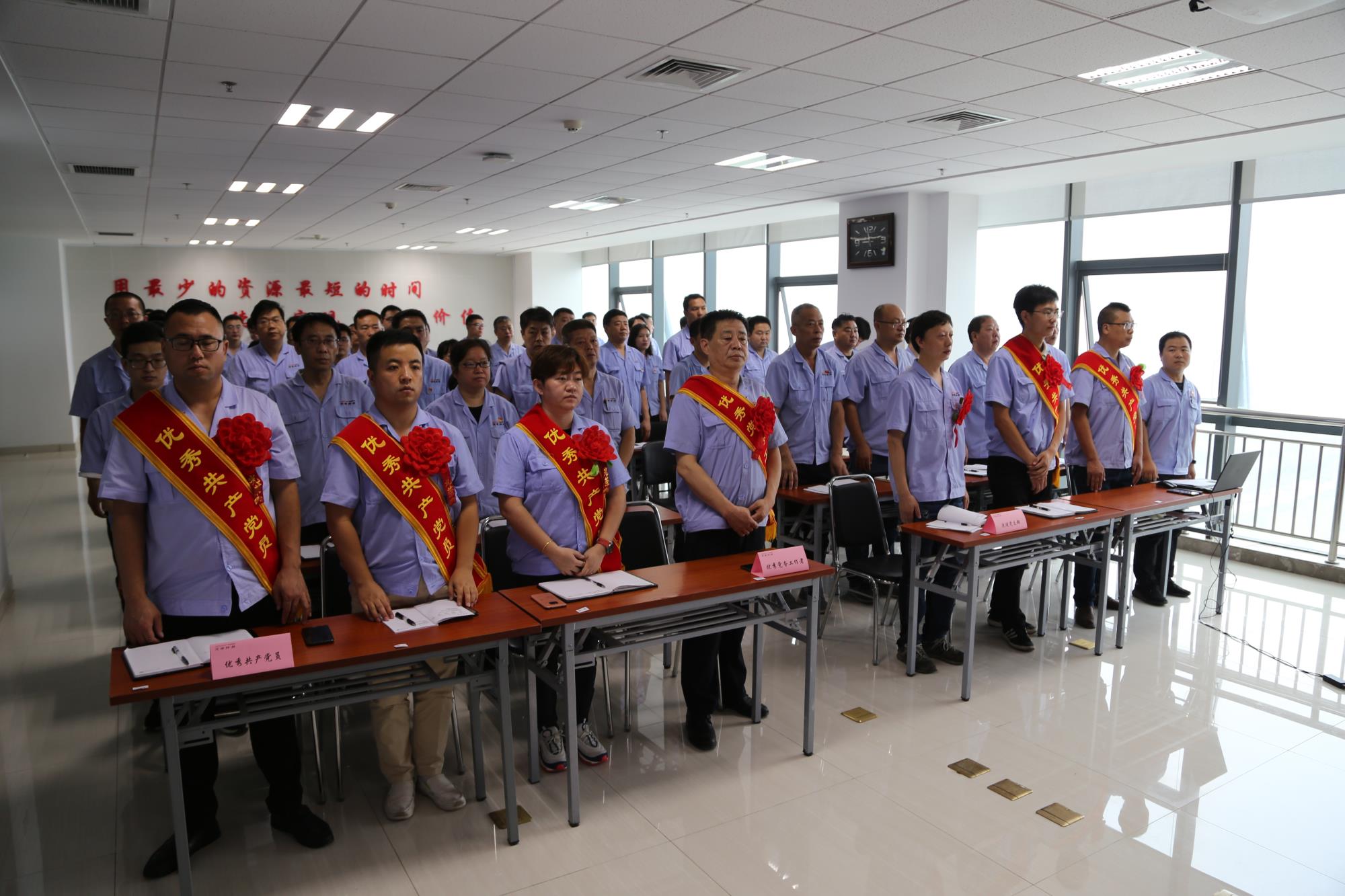 會議在全體黨員干部齊聲高唱國歌聲中開始,黨務(wù)工作者用精心準備的詩歌朗誦《頌歌獻給黨》向黨的生日獻禮,與會黨員干部集體觀看了黨員疫情防控視頻《你是一面旗》及公司疫情防控和復工復產(chǎn)視頻,7名預備黨員在黨旗下進行了莊嚴宣誓。