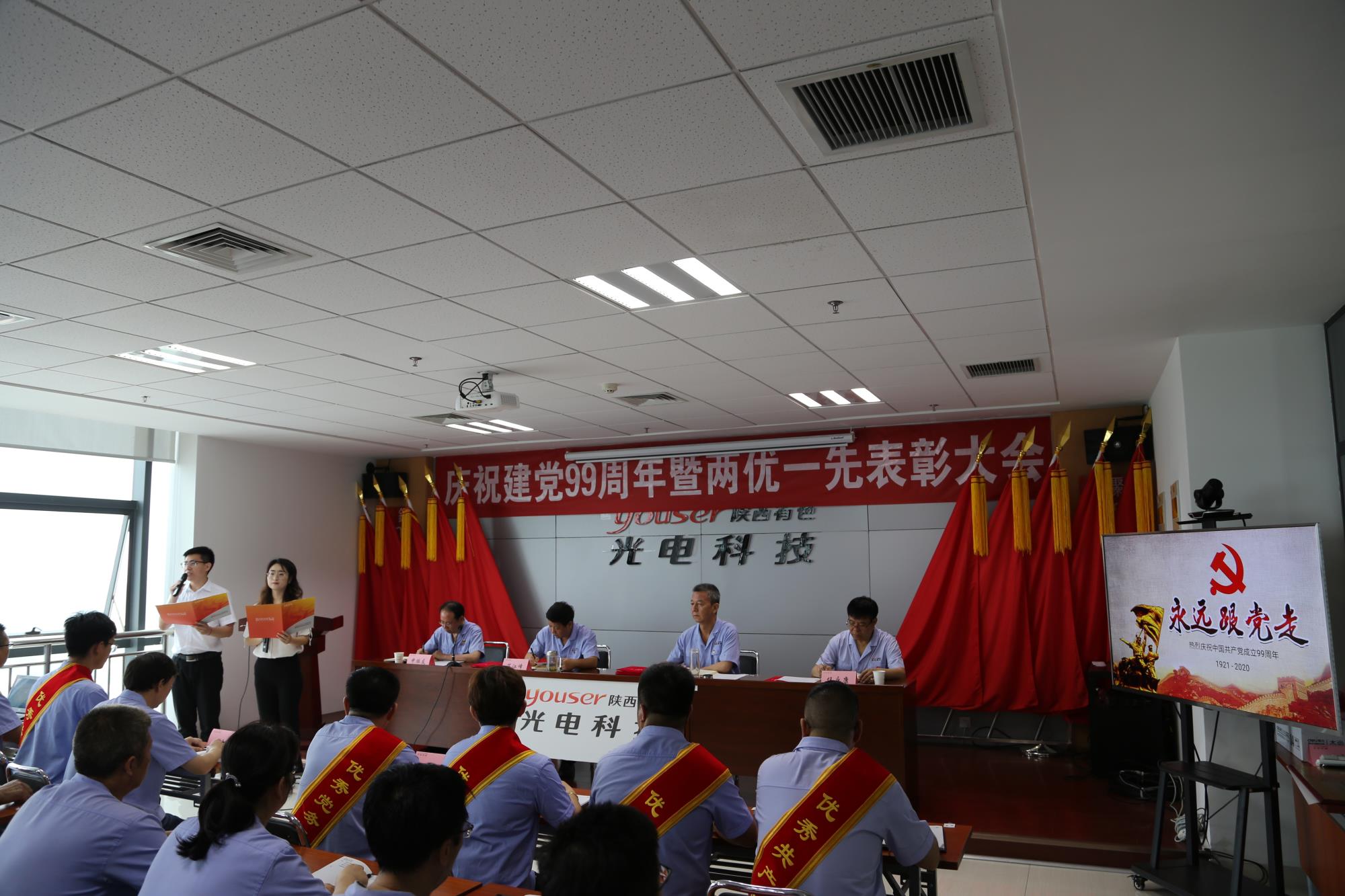 7月1日上午,光電科技、華山半導體兩公司在研發(fā)大廈六樓會議室召開慶祝建黨99周年暨兩優(yōu)一先表彰大會,公司領(lǐng)導、全體中層干部,先進黨員、預備黨員、老黨員代表近80人參加會議,黨委副書記申振友主持會議。