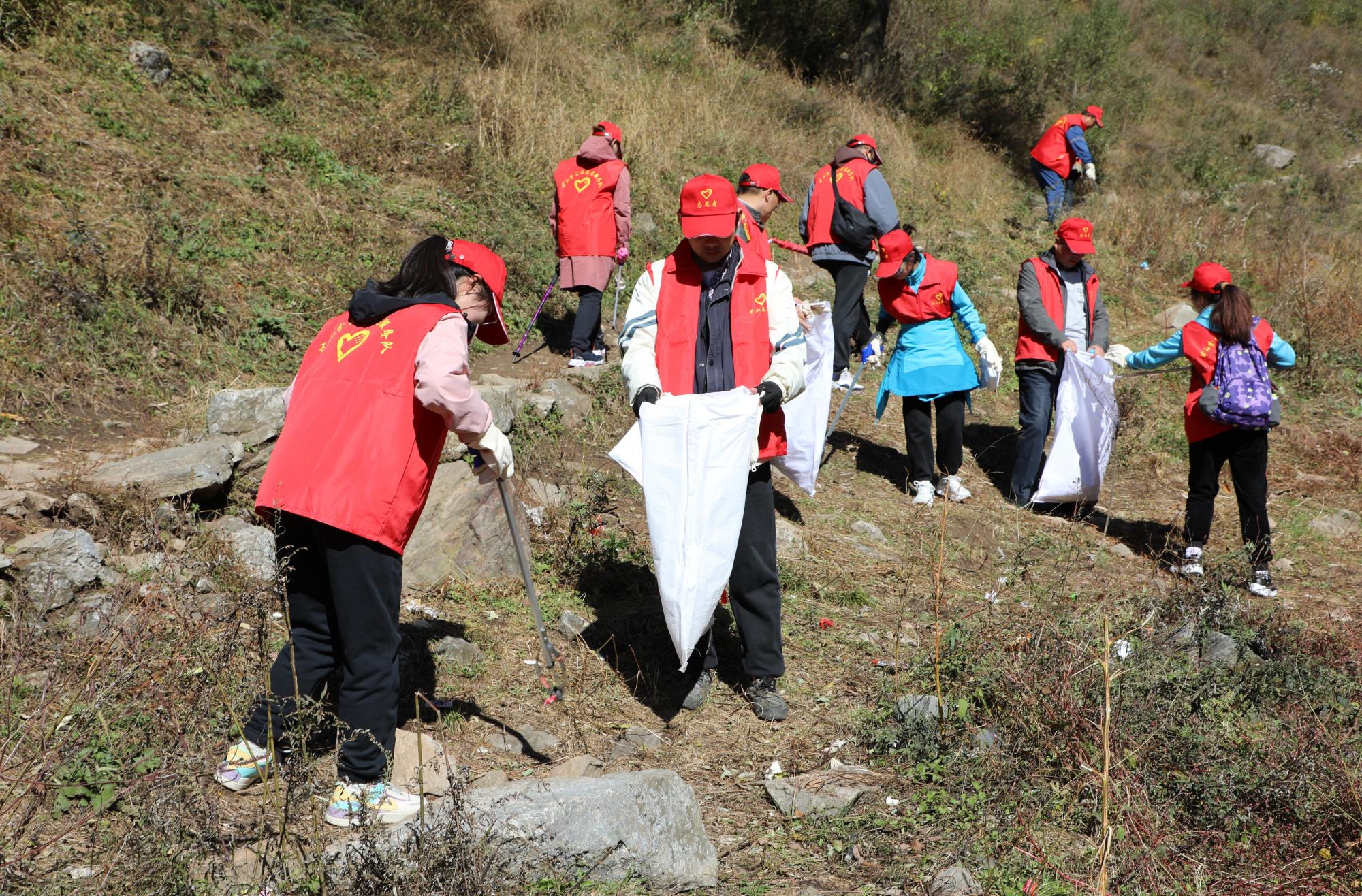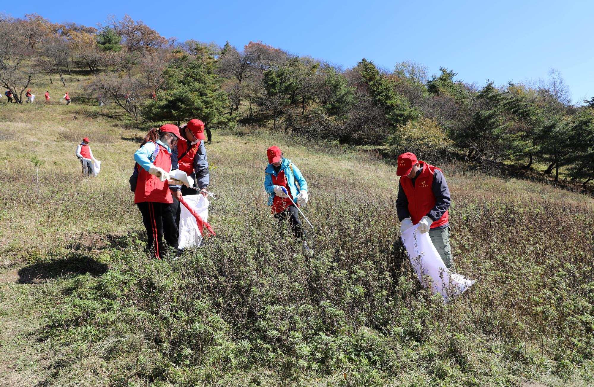 當日,陽光正好,志愿者們身著醒目的紅色馬甲,早早匯聚于華陽草甸。他們士氣高昂,以飽滿的熱情和強烈的責任感,投入到這場清山行動中。手中的垃圾袋和夾子成為了他們的“環(huán)保利劍”,草叢中、山坡上、小徑邊,垃圾無所遁形,小到煙頭,大到食品包裝,都被一一清理,華陽草甸重煥潔凈與美麗。