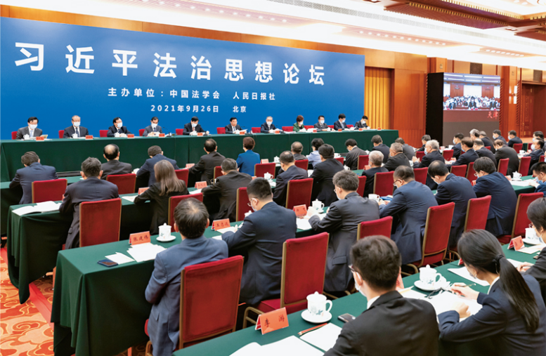 2021年9月26日,由中國法學(xué)會和人民日報社聯(lián)合主辦的習(xí)近平法治思想論壇在京舉行。論壇以“堅定不移走中國特色社會主義法治道路,為全面建成社會主義現(xiàn)代化強國而努力奮斗”為主題,旨在推動社會各界特別是法學(xué)法律界認真學(xué)習(xí)、深入研究、扎實宣傳習(xí)近平法治思想,自覺用習(xí)近平法治思想武裝頭腦、指導(dǎo)實踐、推動工作,譜寫新時代全面依法治國新篇章。 《民主與法制》社記者 戎珊/攝