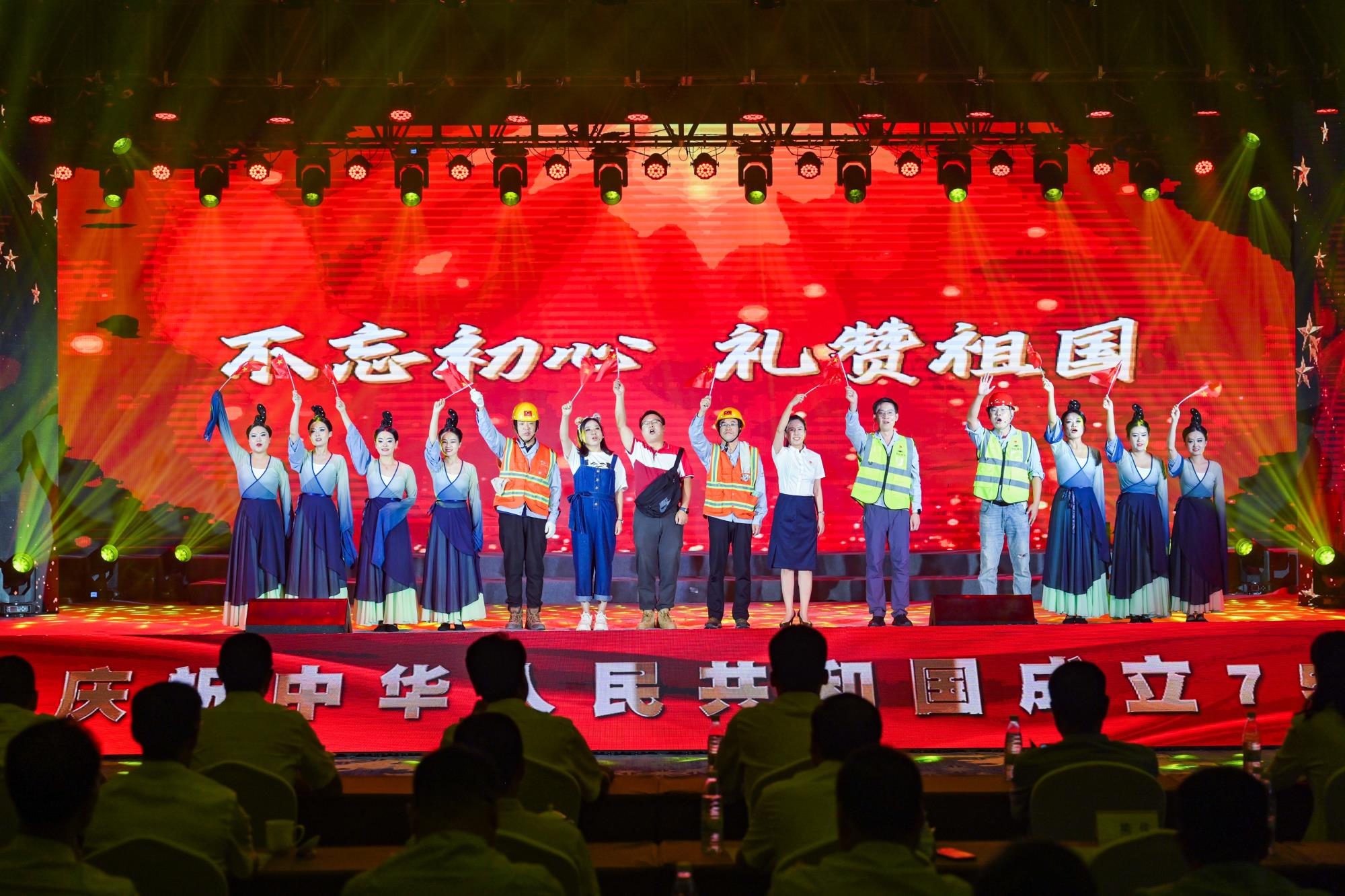 相聲《讓我們蕩起雙槳》令人眼前一亮,原來礦山人不僅有如山般的沉穩(wěn),還有詼諧幽默的一面。一曲奔放灑脫的《躍馬歡歌》,將觀眾帶到風(fēng)吹草低見牛羊的內(nèi)蒙古,一起感受北疆人的豪邁與激情。情景劇《不忘初心 禮贊祖國》帶領(lǐng)大家穿越“時(shí)空隧道”,領(lǐng)略科技賦能下的西北有色文保產(chǎn)業(yè),觸摸歷史脈動(dòng),煥發(fā)時(shí)代活力。演出最后,演職人員和全場觀眾齊聲高唱《歌唱祖國》,熱烈的掌聲經(jīng)久不息。