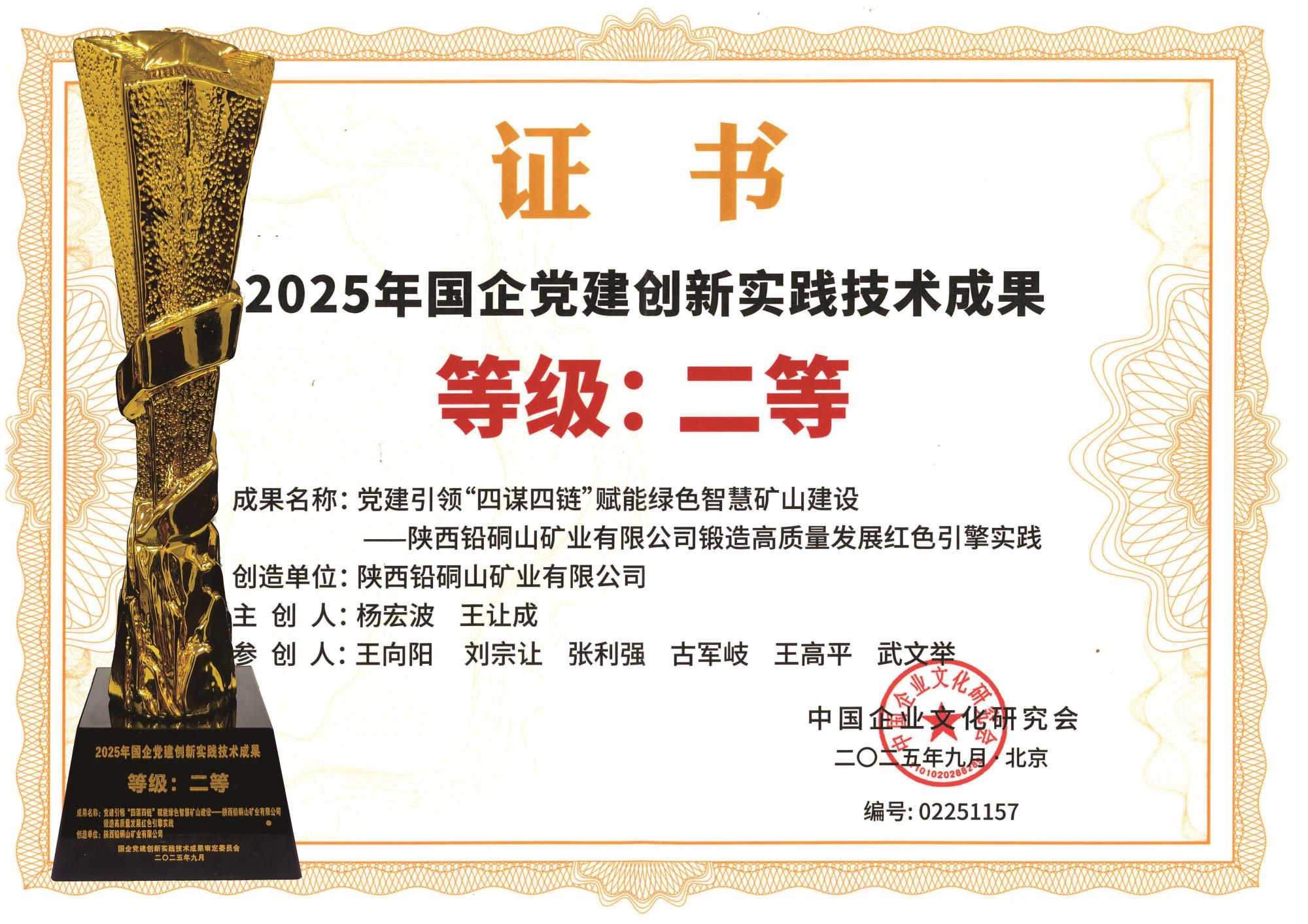 近日,2025 年國(guó)企黨建創(chuàng)新實(shí)踐交流會(huì)在北京召開(kāi)。會(huì)上公布了“2025年國(guó)企黨建創(chuàng)新實(shí)踐技術(shù)成果”評(píng)選結(jié)果,地礦集團(tuán)權(quán)屬工程公司和西北資源鉛硐山礦業(yè)公司申報(bào)的黨建創(chuàng)新成果,從全國(guó)眾多案例中脫穎而出,雙雙榮獲第二等級(jí)。