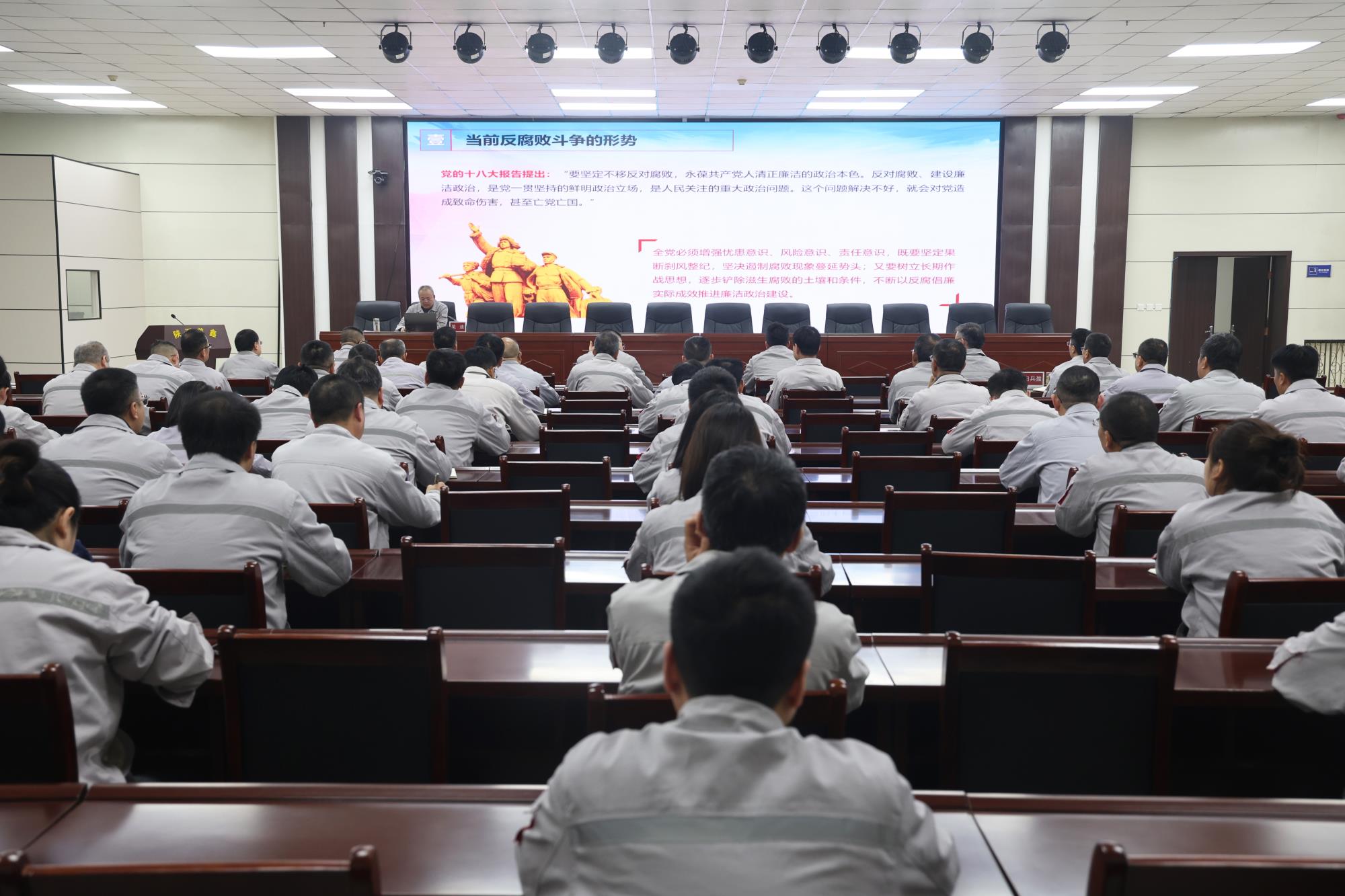 黨課緊扣當(dāng)前反腐敗斗爭(zhēng)形勢(shì)與國(guó)企工作實(shí)際,內(nèi)容詳實(shí)、重點(diǎn)突出、警示性強(qiáng),從當(dāng)前反腐敗斗爭(zhēng)的總體態(tài)勢(shì)和國(guó)企腐敗的主要特點(diǎn)入手,深入闡述了新時(shí)代推進(jìn)黨風(fēng)廉政建設(shè)和反腐敗工作的必要性、復(fù)雜性與長(zhǎng)期性,強(qiáng)調(diào)腐敗現(xiàn)象無(wú)孔不入、時(shí)時(shí)存在,黨員干部必須始終保持清醒頭腦,堅(jiān)決克服麻痹松懈思想和厭煩對(duì)抗情緒,以“永遠(yuǎn)在路上”的執(zhí)著持續(xù)正風(fēng)肅紀(jì)。