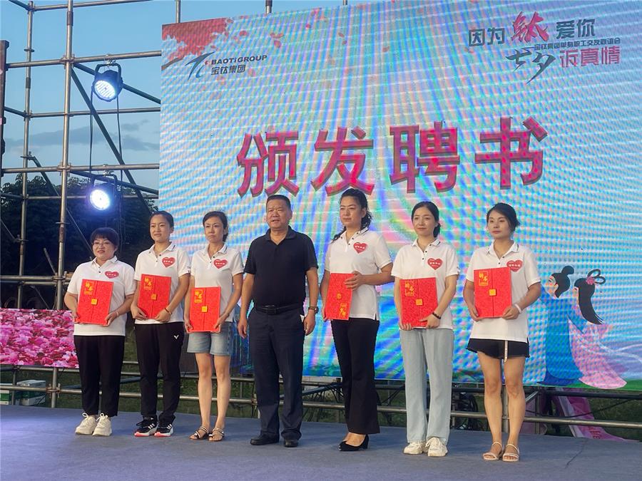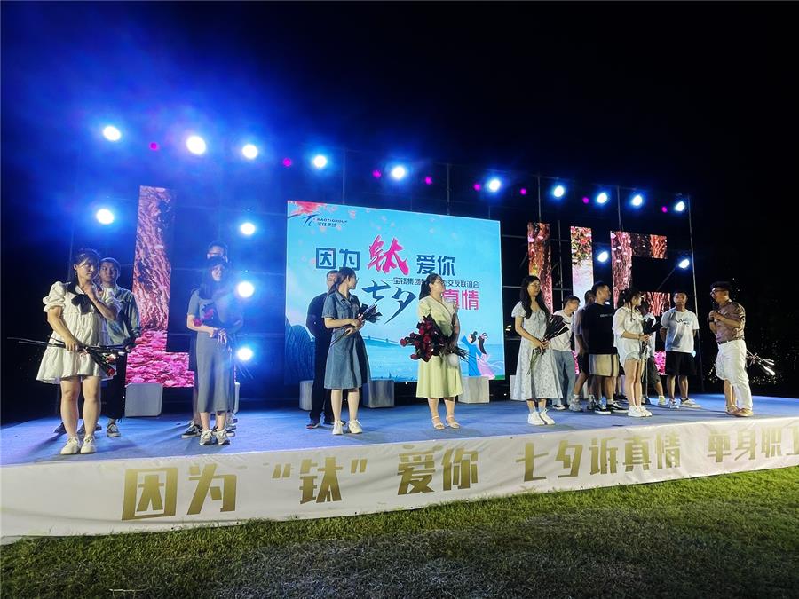 8月4日七夕夜,由寶鈦集團工會主辦,工會女職委、團委辦公室承辦的“因為‘鈦’愛你 七夕訴真情”單身職工交友聯誼活動在西府歡樂城內的北山風吟營地如期舉辦。寶鈦集團黨委副書記、工會主席王建超出席活動并為“寶鈦紅娘”代表發放聘書。工會副主席田周平致開幕辭。