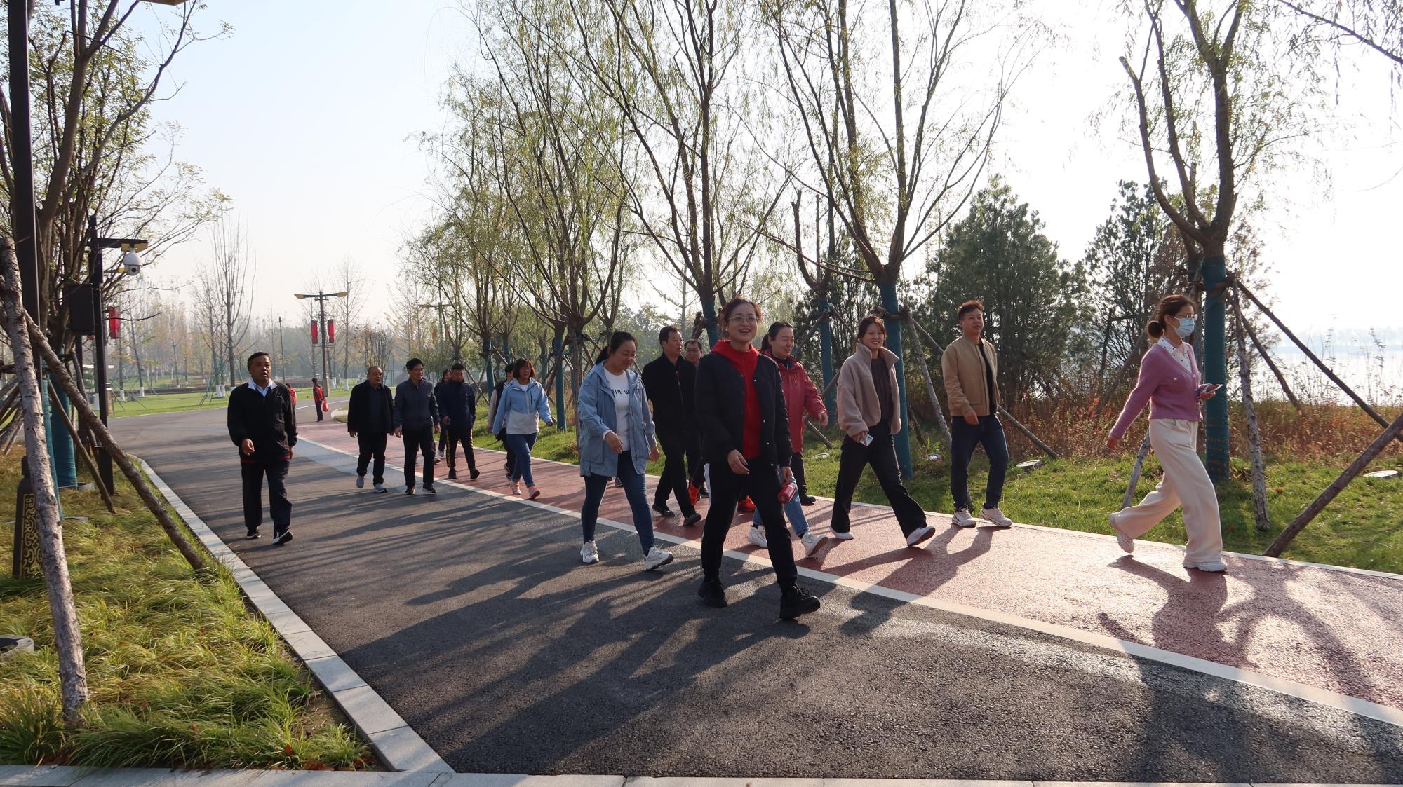 活動現(xiàn)場干部職工們精神飽滿、意氣風發(fā),大家邁著矯健的步伐爭相向前,在活動中共享秋韻之美、運動之美、健康之美。在健步走過程中,一邊欣賞沿途風景、呼吸新鮮空氣,一邊相互鼓勵、相互加油,一路歡聲笑語,釋放壓力,享受健步行帶來的激情活力,用實際行動踐行綠色生活理念。