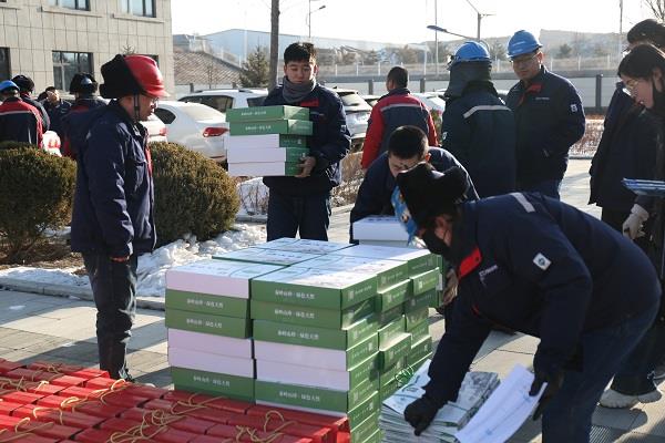 天氣雖然寒冷,但發(fā)放現(xiàn)場氣氛熱烈,職工們臉上洋溢著幸福的微笑,隨處可見你來我往、手提車?yán)?,工作人員配合默契,卸車、搬運、核發(fā),井然有序。沉甸甸的慰問品不僅給帶來了濃濃的新春祝福,也為每位職工心里帶來了滿滿的希望和勁頭。大家表示新的一年一定會將公司給予的關(guān)懷化為工作動力,用實際行動為公司高質(zhì)量發(fā)展作出更多貢獻。
