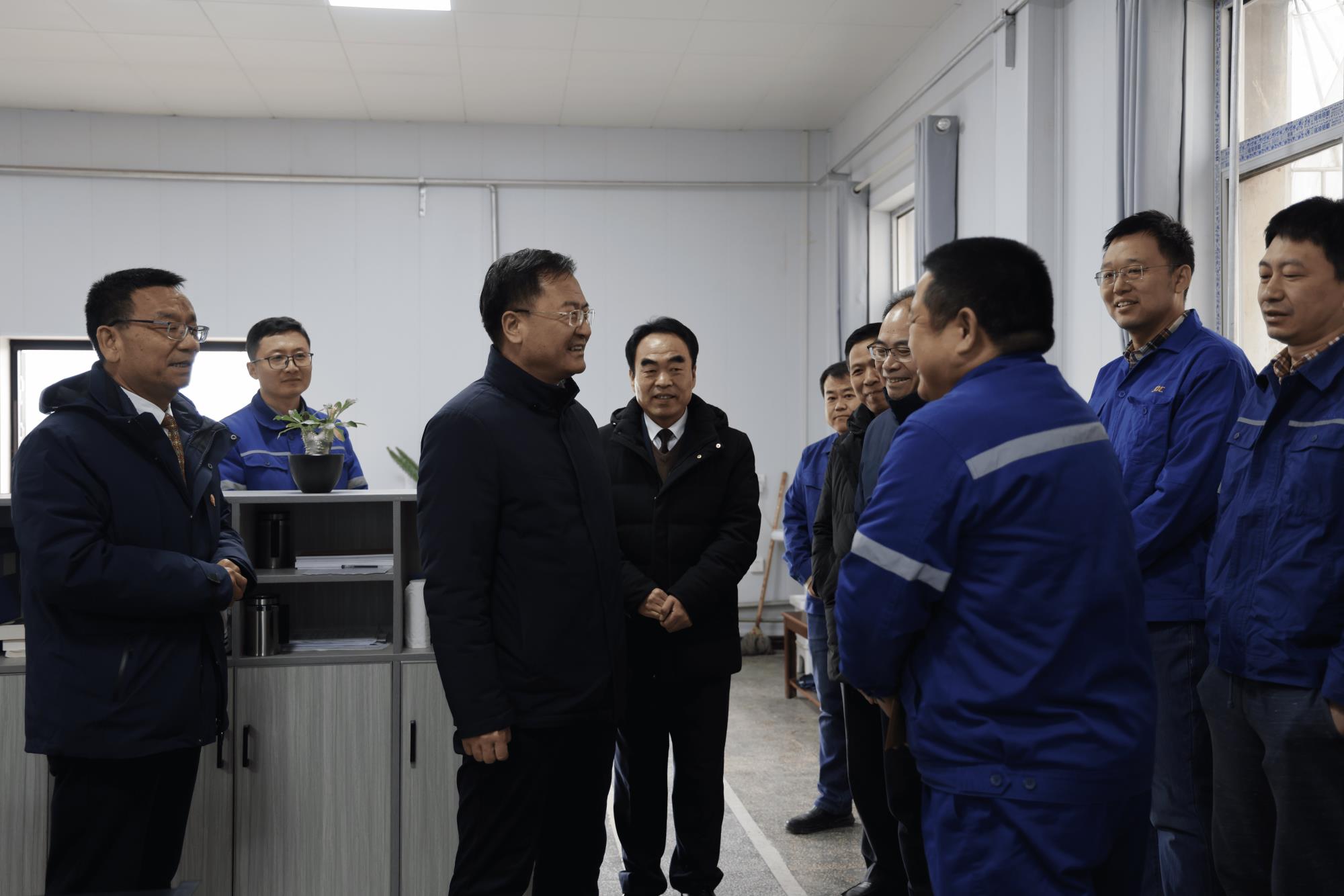 在王國順當(dāng)班的一區(qū)值班室,嚴(yán)平聽取了采場生產(chǎn)工藝以及調(diào)度室人員值班等情況介紹,對王國順多年來扎根一線、默默奉獻的精神表示感謝,勉勵他要繼續(xù)發(fā)揮先鋒模范作用,帶領(lǐng)團隊為推動公司高質(zhì)量發(fā)展貢獻智慧和力量。