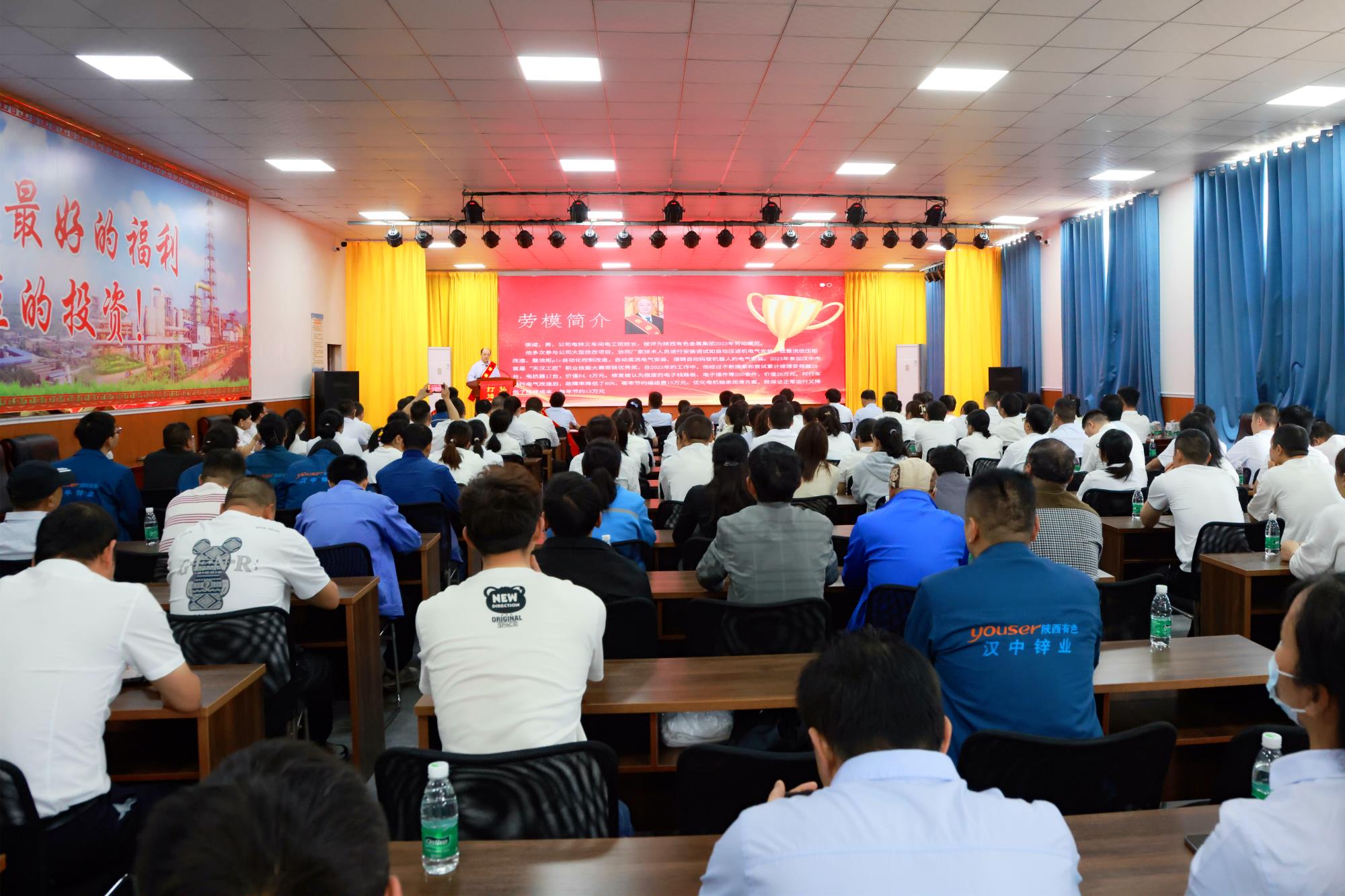 為充分發(fā)揮勞動模范和先進人物的示范引領(lǐng)作用,調(diào)動廣大職工工作積極性和創(chuàng)造性,在公司上下營造尊重勞模、學(xué)習(xí)先進的濃厚氛圍,為公司轉(zhuǎn)型發(fā)展提供有力支撐,4月26日,在“五一”國際勞動節(jié)來臨之際,漢中鋅業(yè)工會在多功能廳舉辦“弘揚勞模精神 打造工匠文化”勞動模范宣講報告會。公司黨委副書記、工會主席路延忠,黨委委員、紀委書記陳庭靜,公司工會委員,基層支部書記、工會主席,職工及青年代表近150人參加。