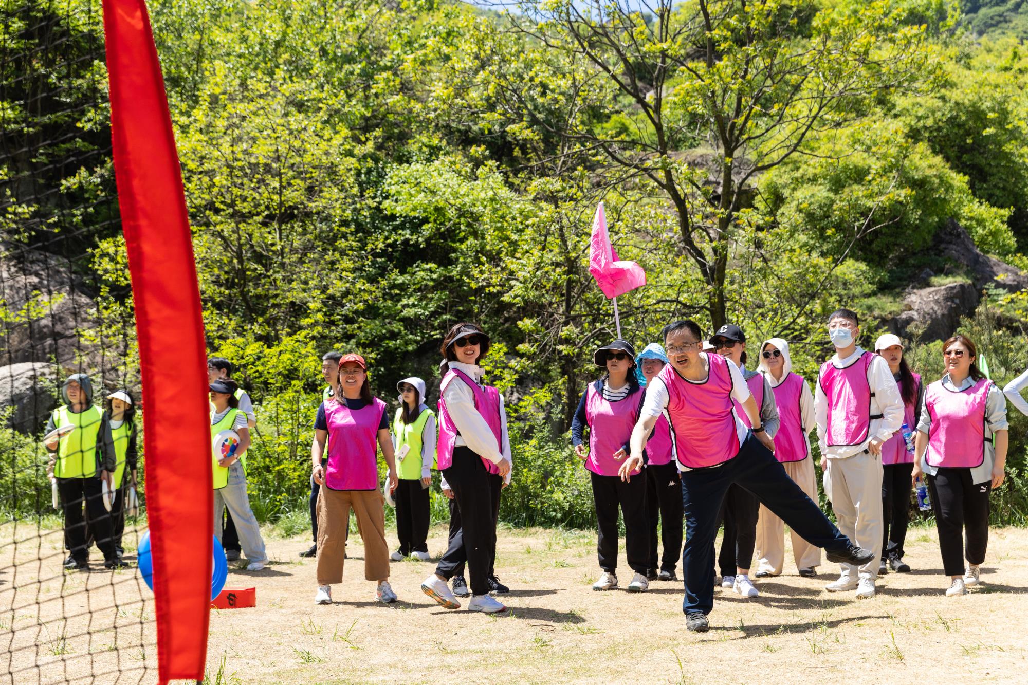凝心聚力,共創(chuàng)佳績。到達(dá)團(tuán)建場地后,趣味十足的戶外飛盤運(yùn)動拉開了序幕。團(tuán)建教練帶領(lǐng)大家進(jìn)行團(tuán)隊分組、賽前熱身,并細(xì)心傳授飛盤運(yùn)動技巧。分組協(xié)作練習(xí)后,緊張激烈的飛盤保齡球、飛盤投籃、飛盤九宮格等比賽依次開戰(zhàn)。一起奔跑,凌空跳躍,每一次拋盤和接盤,都在考驗著隊友之間的協(xié)作配合。大家在肆意奔跑中揮汗解壓,在歡聲笑語中享受著運(yùn)動的快樂、合作的快樂。