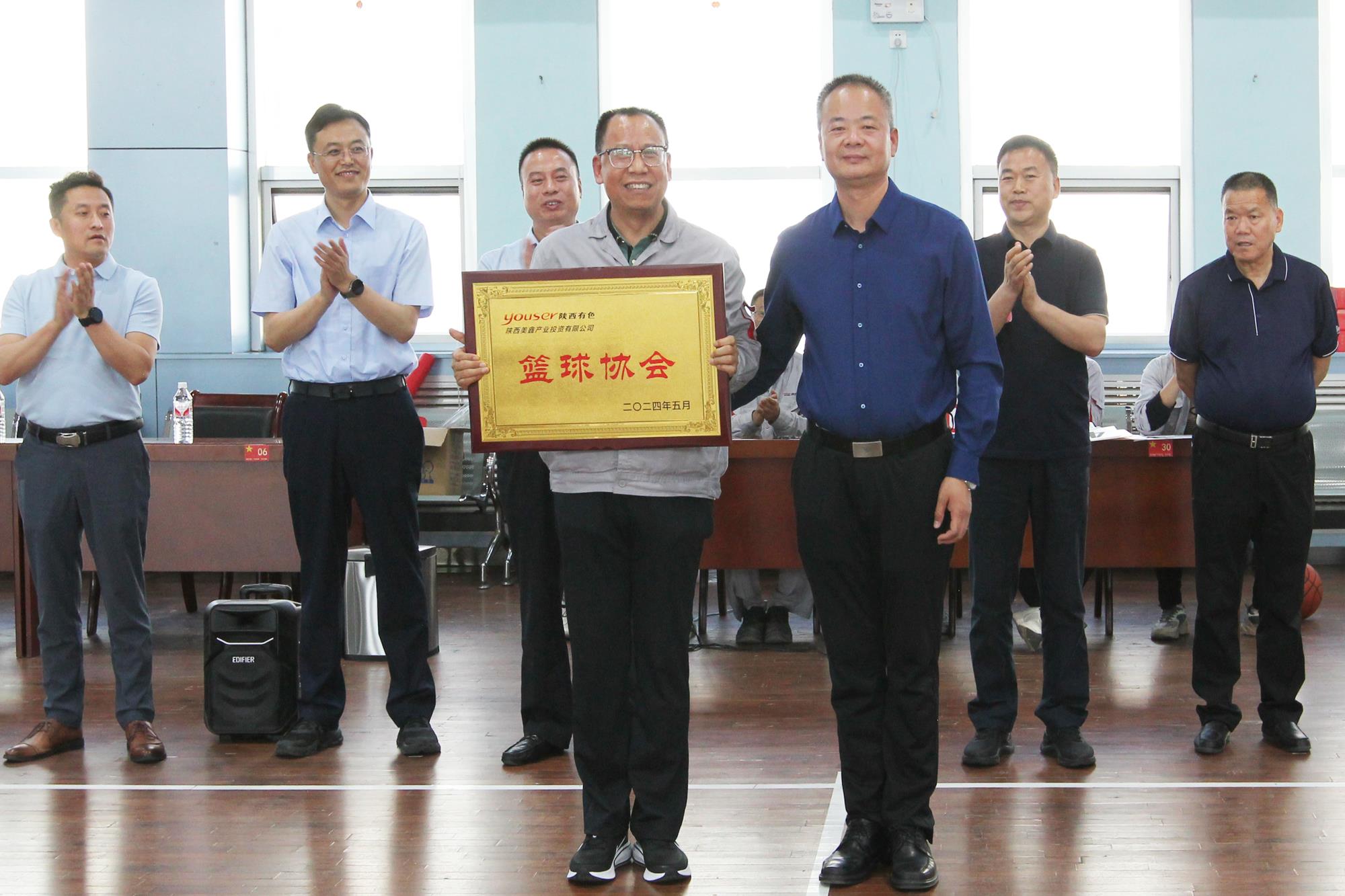 比賽開(kāi)始前,吳迪致歡迎辭并為陜西美鑫公司籃球協(xié)會(huì)授牌,他強(qiáng)調(diào),此次比賽是一次加深雙方合作友誼的絕佳平臺(tái),希望雙方球員秉承“友誼第一”的原則,賽出水平、賽出風(fēng)格、賽出干事創(chuàng)業(yè)的精氣神,希望陜西美鑫與寶鈦集團(tuán)在陜西有色金屬集團(tuán)“聚”文化引領(lǐng)下,攜手并進(jìn)、共享機(jī)遇、共謀發(fā)展。賀治民對(duì)陜西美鑫公司籃球協(xié)會(huì)的成立表示祝賀,希望兩家單位以本次比賽為契機(jī),增加了解、增進(jìn)感情,加強(qiáng)交流、相互賦能,不斷拓展合作領(lǐng)域,不斷深化合作成效,共同書(shū)寫(xiě)雙方合作新篇章。