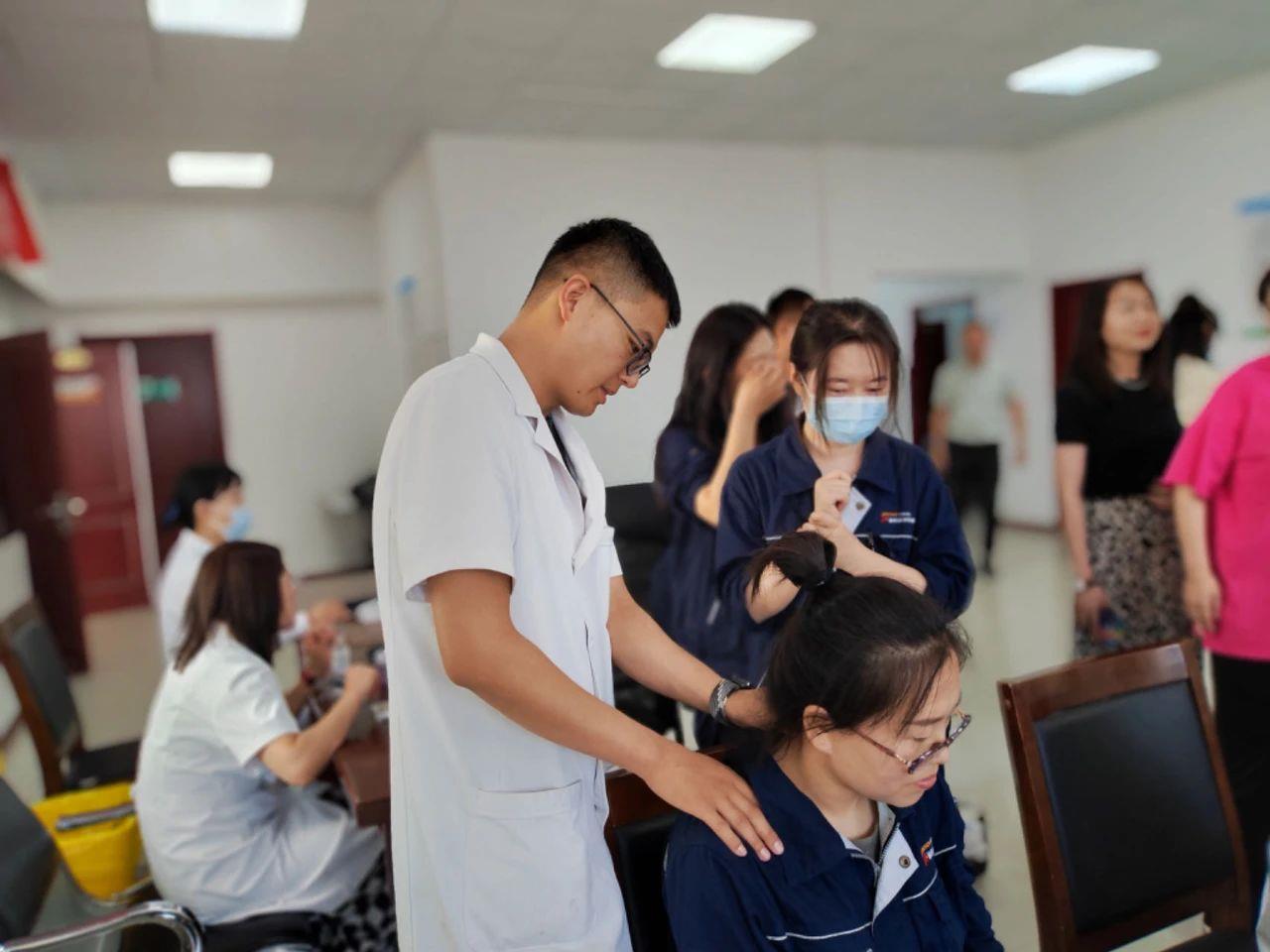 在針灸康復科專家的診位前,不少職工前來體驗推拿、拔罐和針灸,感受著傳統(tǒng)醫(yī)學的博大精深;口腔科專家為職工們進行口腔檢查,并給予專業(yè)的護理建議,為口腔健康筑起堅固防線;內分泌科專家針對職工們常見的血糖、血脂問題給予科學的飲食和運動指導,幫助職工們建立起健康的生活方式......此外,醫(yī)護人員還為職工們測量血壓、血糖,進行心電圖、甲狀腺B超檢查等項目,幫助職工全面了解自己的身體狀況,做到疾病早發(fā)現(xiàn)、早診斷、早治療。